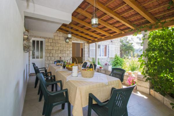 Velmi prostorný apartmán se třemi koupelnami a obrovskou terasou, kde jsme strávili celkem 13 za stůl. Prostřednictvím okna v ložnici jsme poslouchali cikády po celý den a v noci hluk moře, který je docela blízko. Majitelé jsou velmi přátelští, užiteční a vždy k dispozici. Navštivte malý přístav v Brně, stejně jako Blato, Smokvice a krásnou Vela Luka. Vítejte u místních obyvatel a děkuji!