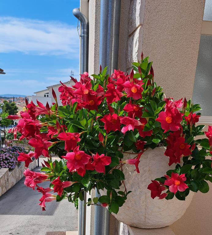 Rodinný dům nově postavený a moderní. Dům je třetí řádek od moře, v klidné čtvrti v Brodarica, 5 km jižně od města Šibenik. Dům se nachází na kopci u moře s krásným výhledem na pláž a okolní ostrovy. Apartmány jsou umístěny v prvním patře v přízemí obývací hostitele, které jsou vždy k dispozici. Dům má dva apartmány s výhledem na moře, ohromující kapacitu 6 -10 lidí. Nemovitost se nachází 1, 30 minut jízdy od pláže pěšky. Vzdálenosti asi 5 min chůze tam jsou četné restaurace a bary, pzzerije, které nabízejí dobré jídlo, nápoje a zmrzlinu. Ve vzdálenosti asi 2-5 km od hotelu jsou různé nákupní centra Dalmare, Lidl, Kaufland, jeřabin, atd ... a dva nejpopulárnější disko běží. Centrum města Šibenik, který je bohatý na kulturní a historické dědictví je 6 km. Přírodní krásy národních parků Krka a je jen asi 15 km a letiště Split 45 km. Ideální místo pro vaši rodinu klidnou a romantickou dovolenou.