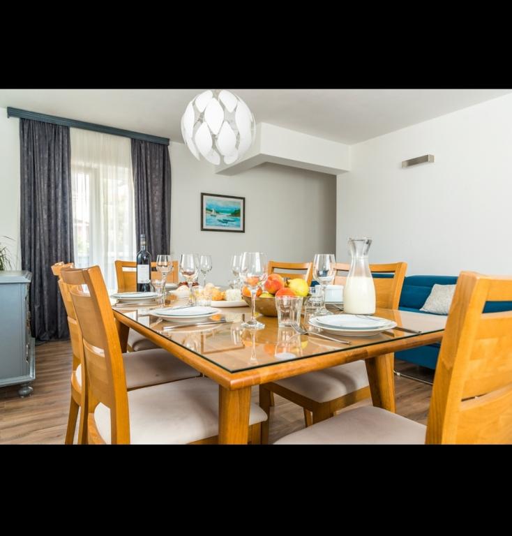 Byt je opravdu skvělý pro každé doporučení! Je plně vybaven a zvláštní úlevu po příjezdu z pláže zajišťuje pračka, pomocí které můžete rychle umýt sůl z plavek a podobně podle krátkého programu. Také myčka neocenitelné pomoci. Byt je čistý, pohodlný k odpočinku a extrémně velký a prostorný! Pěkně a vkusně zařízené také. Má 3 ložnice, z nichž 2 pokoje mají vlastní koupelnu se sprchou, zatímco třetí koupelna je největší vedle 3. ložnice. Takže při příjezdu z pláže všichni ve stejnou dobu pod sprchou, všichni v koupelně bez ztráty času a čekání ve frontě. Pláž je pouhých 10 minut chůze od bytu čisté moře, klid a ticho na pláži s krásným výhledem na ostrov Krapanj. Majitelka bytu Ana je velmi milá a srdečná, pozdravila nás při příjezdu a zajímalo se, zda je vše v pořádku a zda všechno vyhovuje Při příjezdu nás přivítal chlazený nápoj v lednici; šťáva a skvělé víno. Po odchodu nás přišla pozdravit s pěkným dárkem na památku léta v Brodarici a zůstat v jejím bytě. Všechna doporučení k pobytu zde!