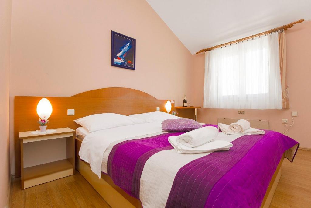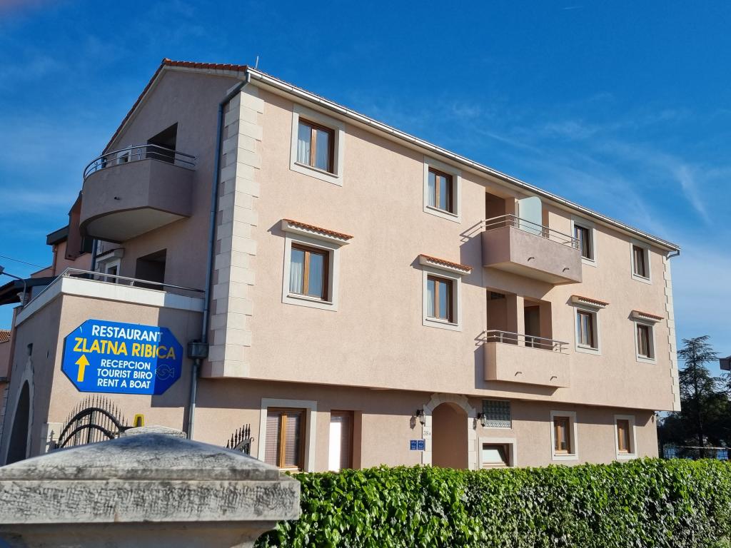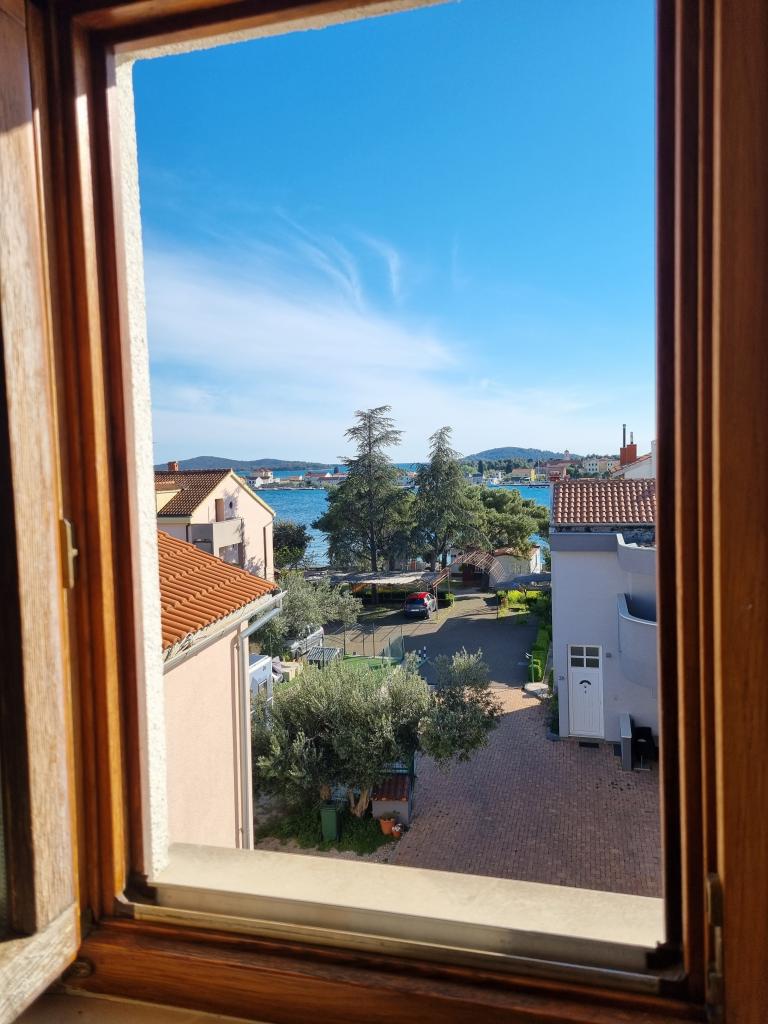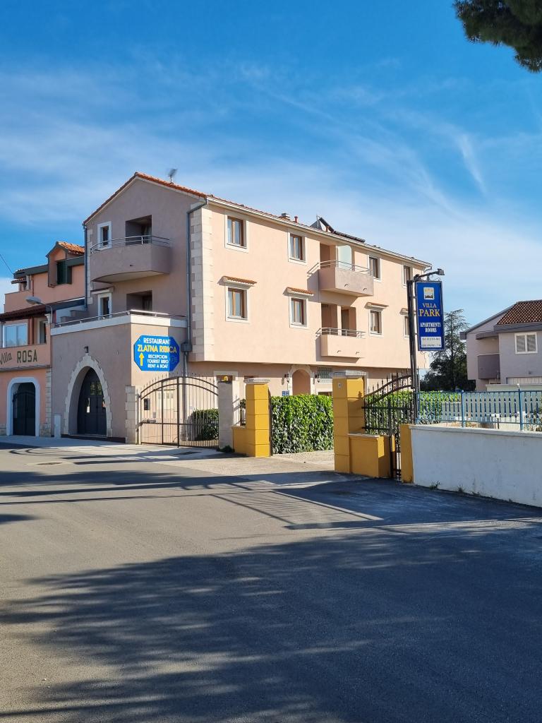 Dům s apartmány a pokoji se nachází u moře nedaleko města Šibenik. Nabízíme opalovací plochu v lese před domem, kde se nachází i dětské hřiště. Parkování pro auta. Využití fitness centra.