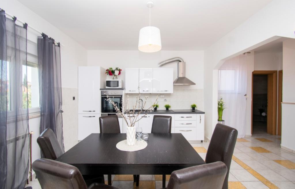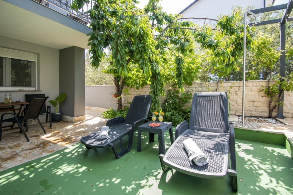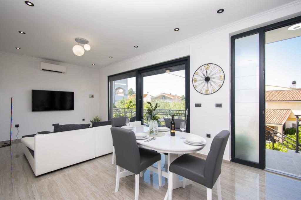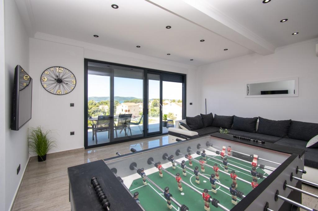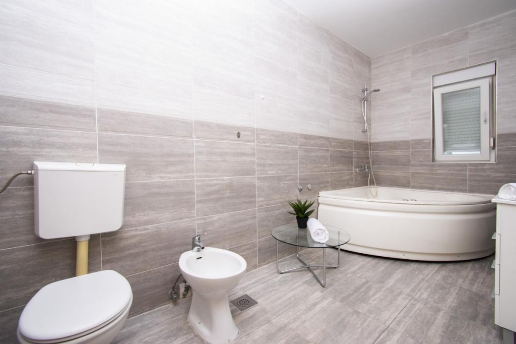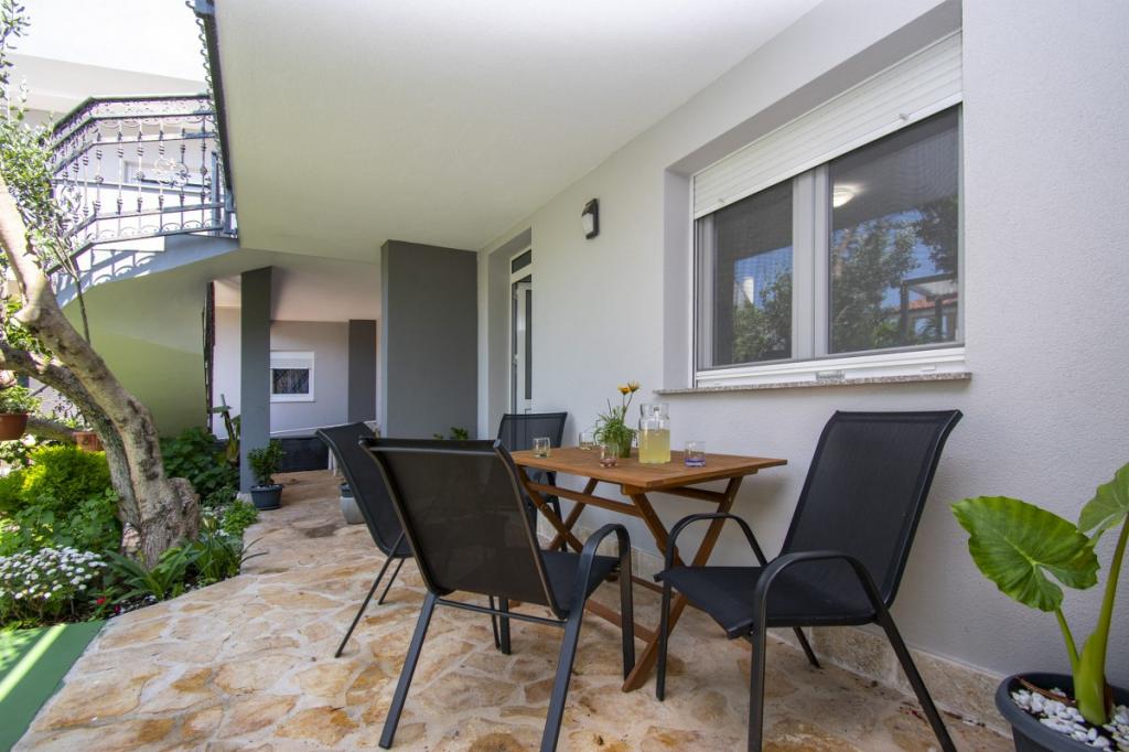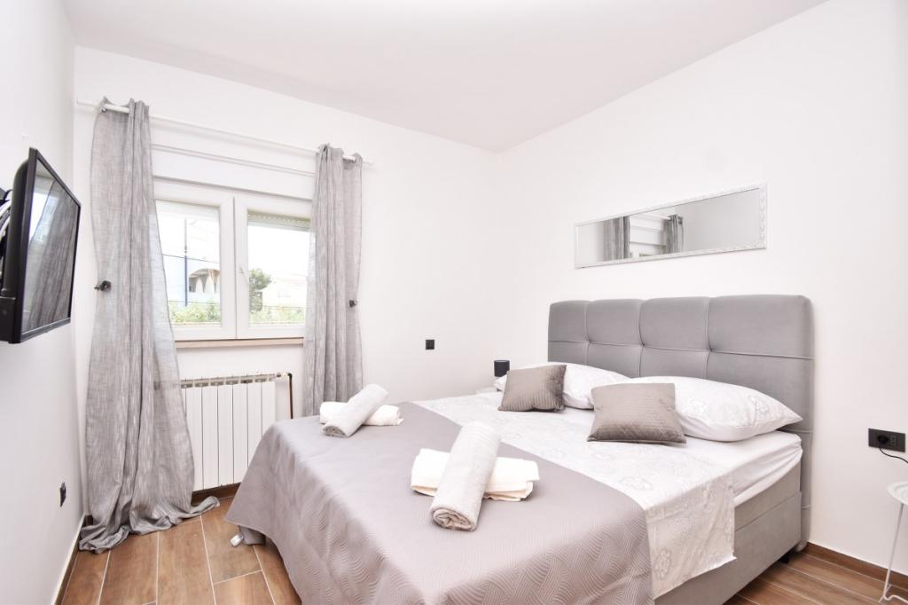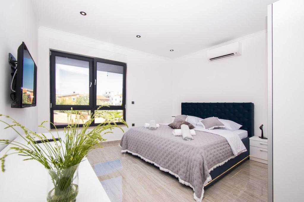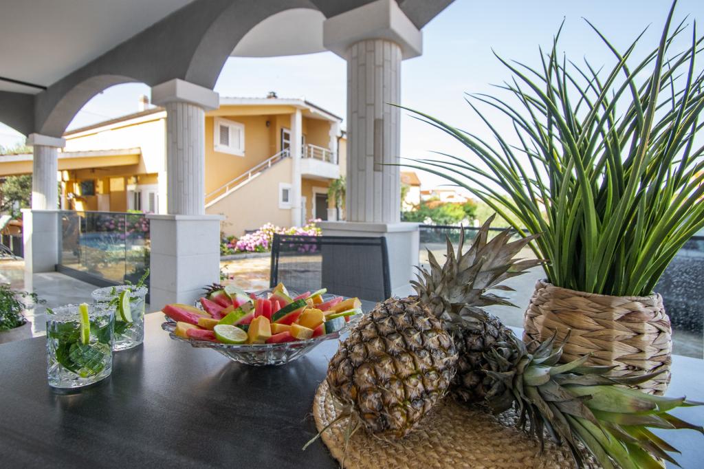 Dům pro 10 osob s bazénem a jacuzzi se nachází v klidné části Brodarica, obklopený spoustou zeleně a květin. První dva byty jsou v přízemí, jeden má 45 m2 a druhý 50 m2. Každý apartmán má ložnici s manželskou postelí, kuchyň, rozkládací pohovku, koupelnu a terasu se stolem a židlemi. Třetí apartmán je 90 m2, nachází se v prvním patře, má dvě velké dvoulůžkové ložnice, velký obývací pokoj, kuchyň, koupelnu a terasu 45 m2 se stolem a židlemi. Je vhodný pro trochu větší rodinu a přátele. Byt je klimatizovaný. Čtvrtý apartmán je luxusně zařízený, cca 100m2, má velký obývací pokoj, plně vybavenou kuchyň, velký pokoj s televizí a klimatizací, v bytě je i sauna. na střeše je vířivka s velkou terasou. každý apartmán má klimatizaci a každý pokoj má také televizi. Bazén je společný. Dům je 5-6 minut chůze od moře. Vedle domu jsou další dva byty, jeden má 110m2 luxusně zařízený a druhý 55m2.