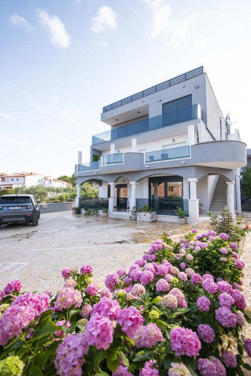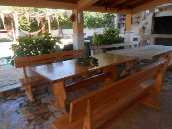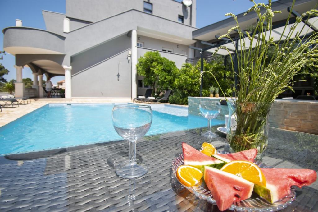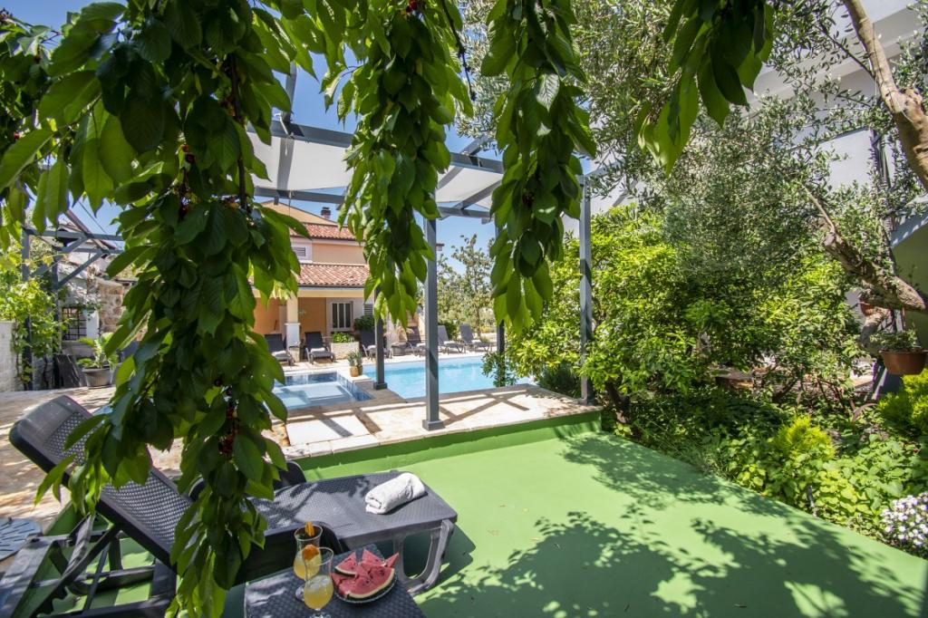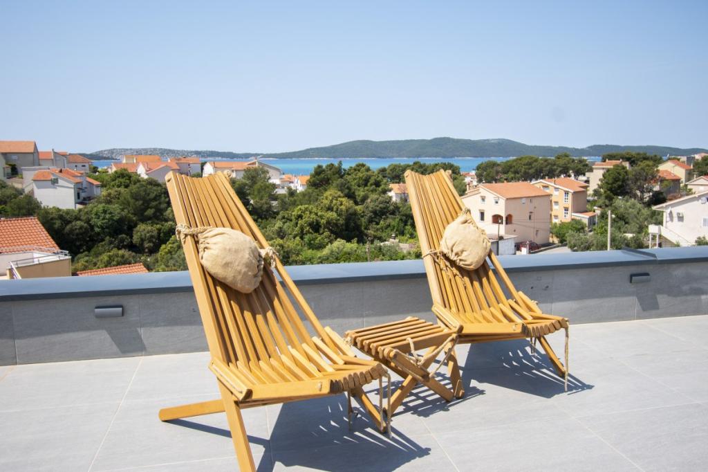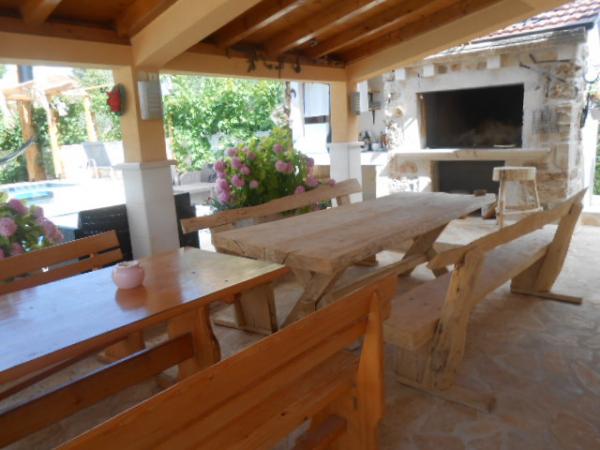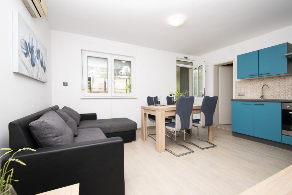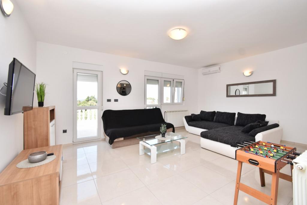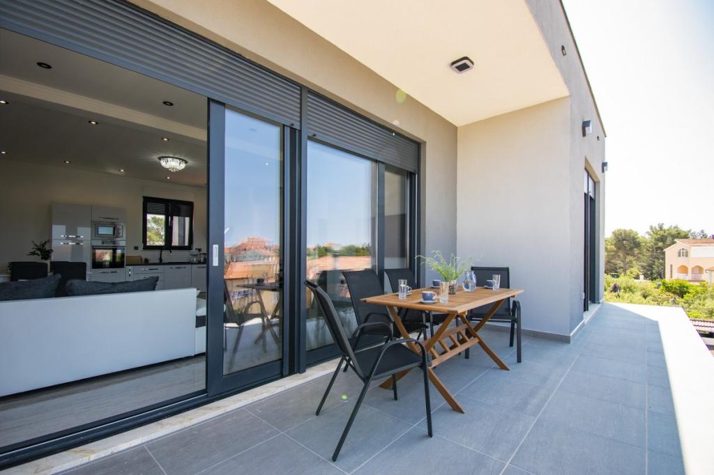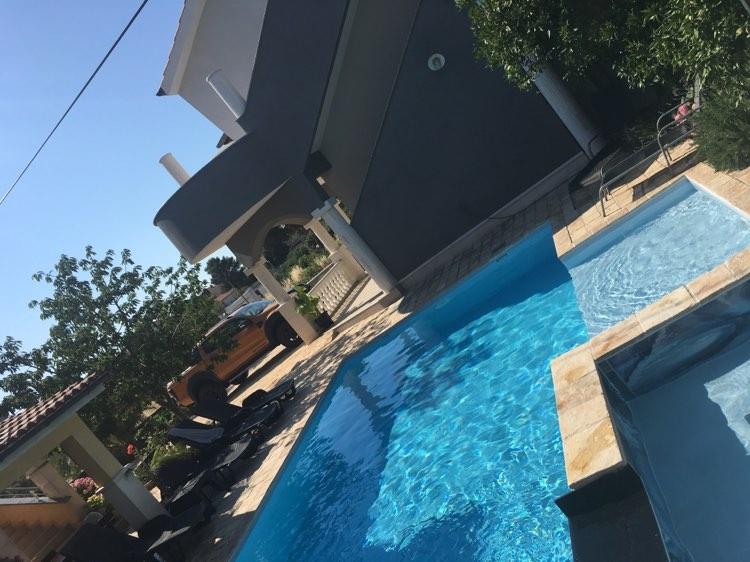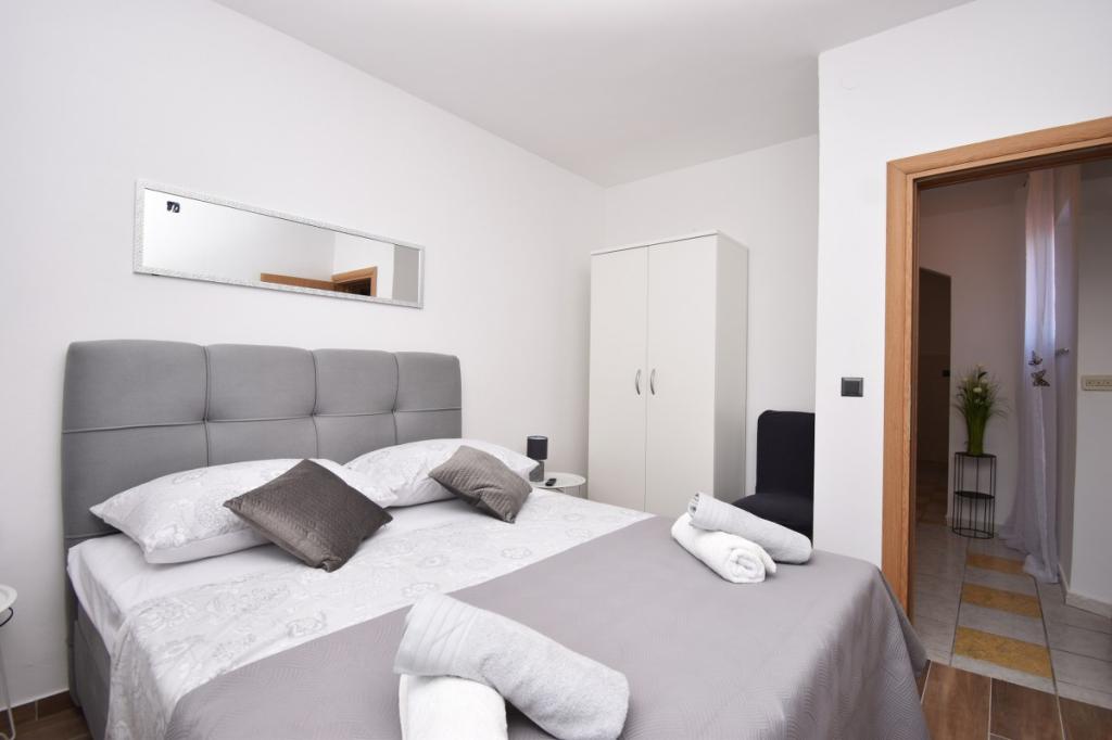 Dům pro 10 osob s bazénem a jacuzzi se nachází v klidné části Brodarica, obklopený spoustou zeleně a květin. První dva byty jsou v přízemí, jeden má 45 m2 a druhý 50 m2. Každý apartmán má ložnici s manželskou postelí, kuchyň, rozkládací pohovku, koupelnu a terasu se stolem a židlemi. Třetí apartmán je 90 m2, nachází se v prvním patře, má dvě velké dvoulůžkové ložnice, velký obývací pokoj, kuchyň, koupelnu a terasu 45 m2 se stolem a židlemi. Je vhodný pro trochu větší rodinu a přátele. Byt je klimatizovaný. Čtvrtý apartmán je luxusně zařízený, cca 100m2, má velký obývací pokoj, plně vybavenou kuchyň, velký pokoj s televizí a klimatizací, v bytě je i sauna. na střeše je vířivka s velkou terasou. každý apartmán má klimatizaci a každý pokoj má také televizi. Bazén je společný. Dům je 5-6 minut chůze od moře. Vedle domu jsou další dva byty, jeden má 110m2 luxusně zařízený a druhý 55m2.