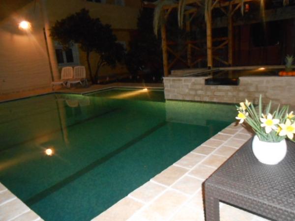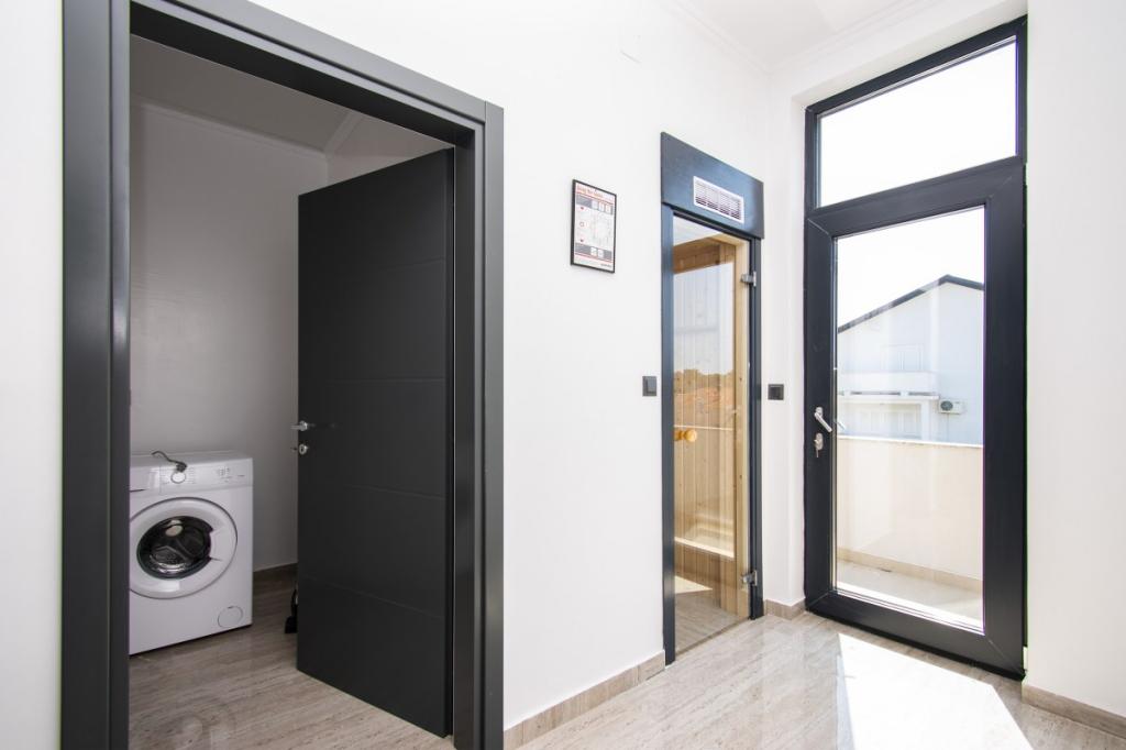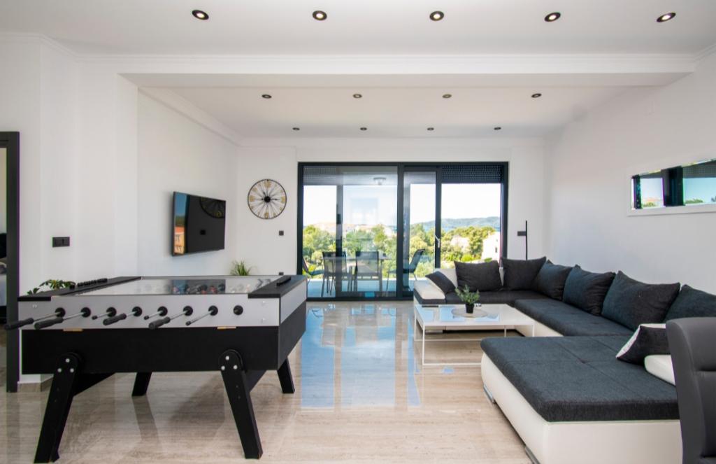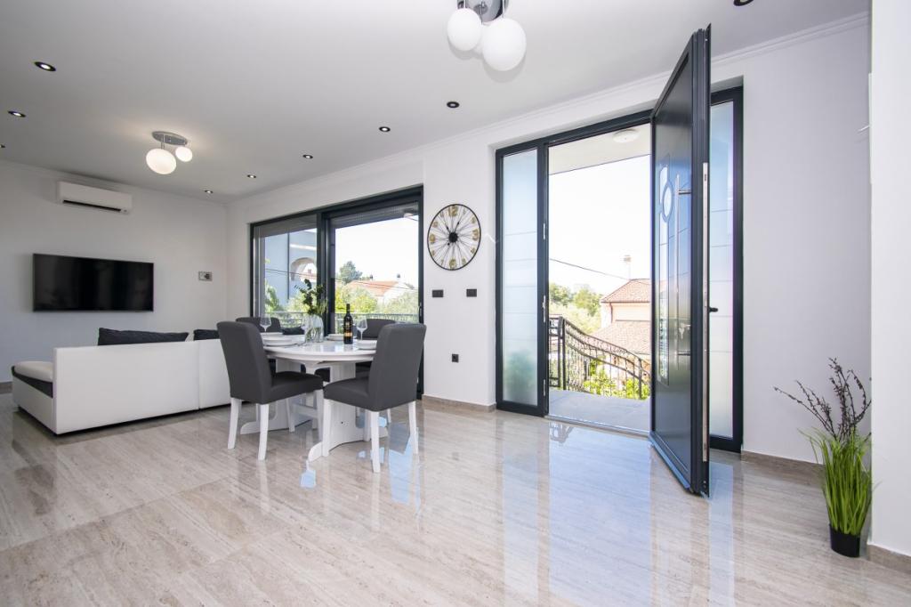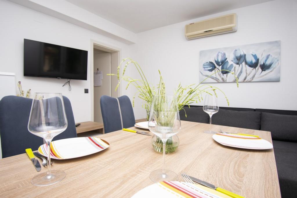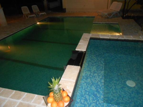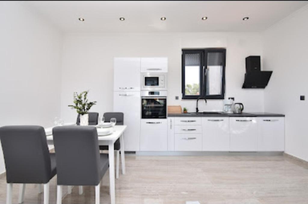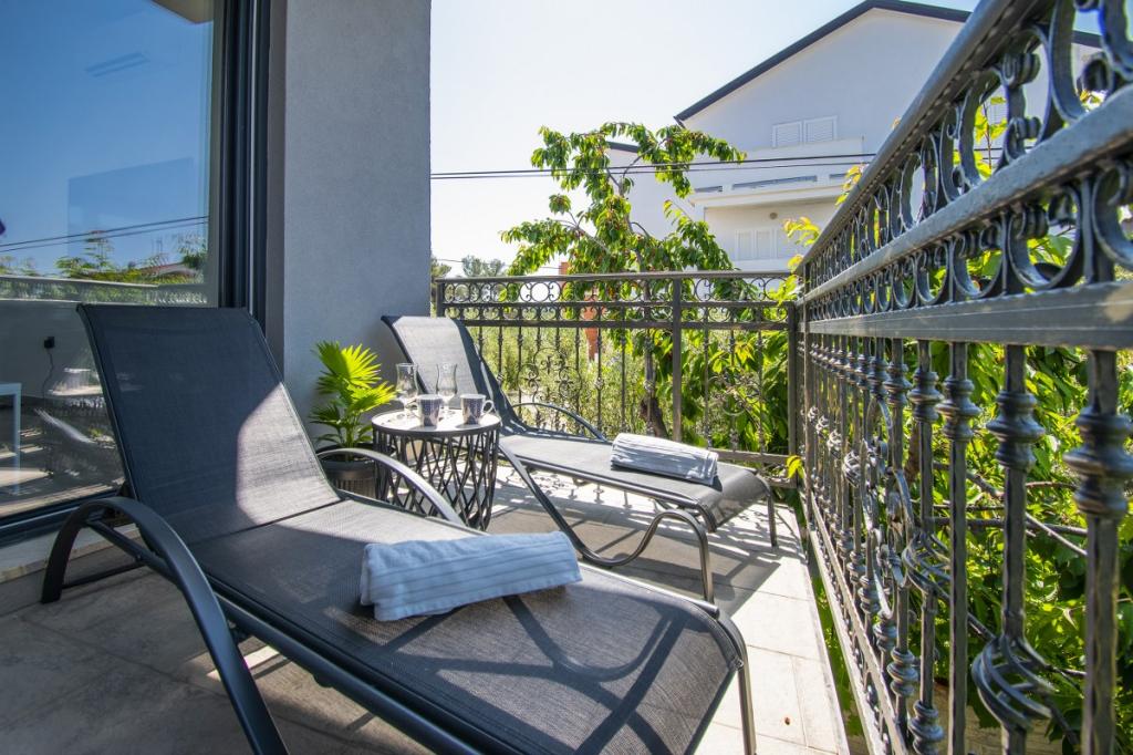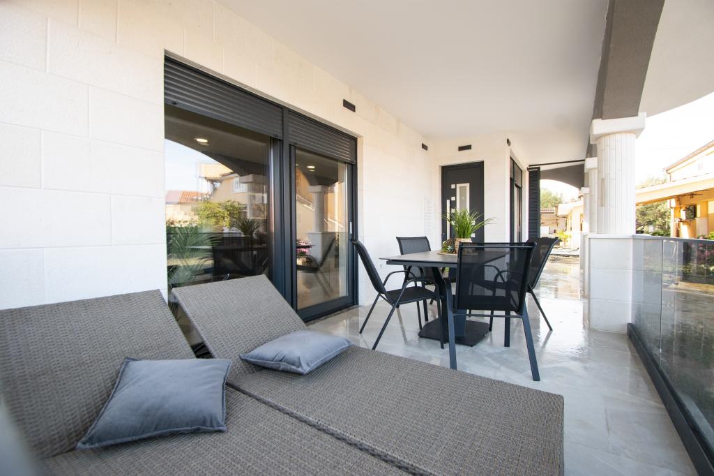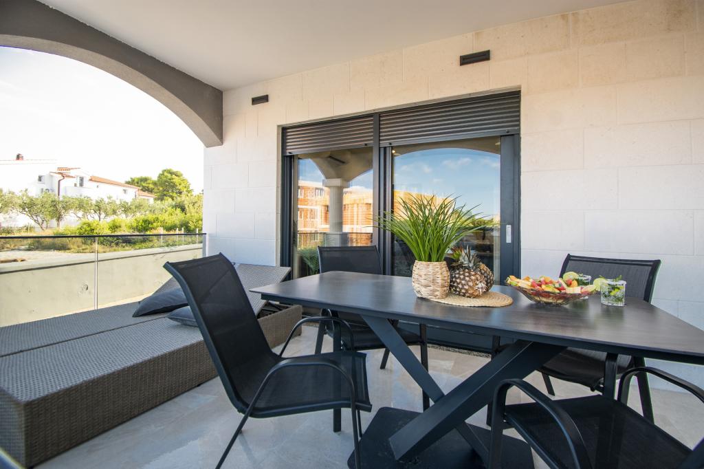Dům pro 10 osob s bazénem a jacuzzi se nachází v klidné části Brodarica, obklopený spoustou zeleně a květin. První dva byty jsou v přízemí, jeden má 45 m2 a druhý 50 m2. Každý apartmán má ložnici s manželskou postelí, kuchyň, rozkládací pohovku, koupelnu a terasu se stolem a židlemi. Třetí apartmán je 90 m2, nachází se v prvním patře, má dvě velké dvoulůžkové ložnice, velký obývací pokoj, kuchyň, koupelnu a terasu 45 m2 se stolem a židlemi. Je vhodný pro trochu větší rodinu a přátele. Byt je klimatizovaný. Čtvrtý apartmán je luxusně zařízený, cca 100m2, má velký obývací pokoj, plně vybavenou kuchyň, velký pokoj s televizí a klimatizací, v bytě je i sauna. na střeše je vířivka s velkou terasou. každý apartmán má klimatizaci a každý pokoj má také televizi. Bazén je společný. Dům je 5-6 minut chůze od moře. Vedle domu jsou další dva byty, jeden má 110m2 luxusně zařízený a druhý 55m2.