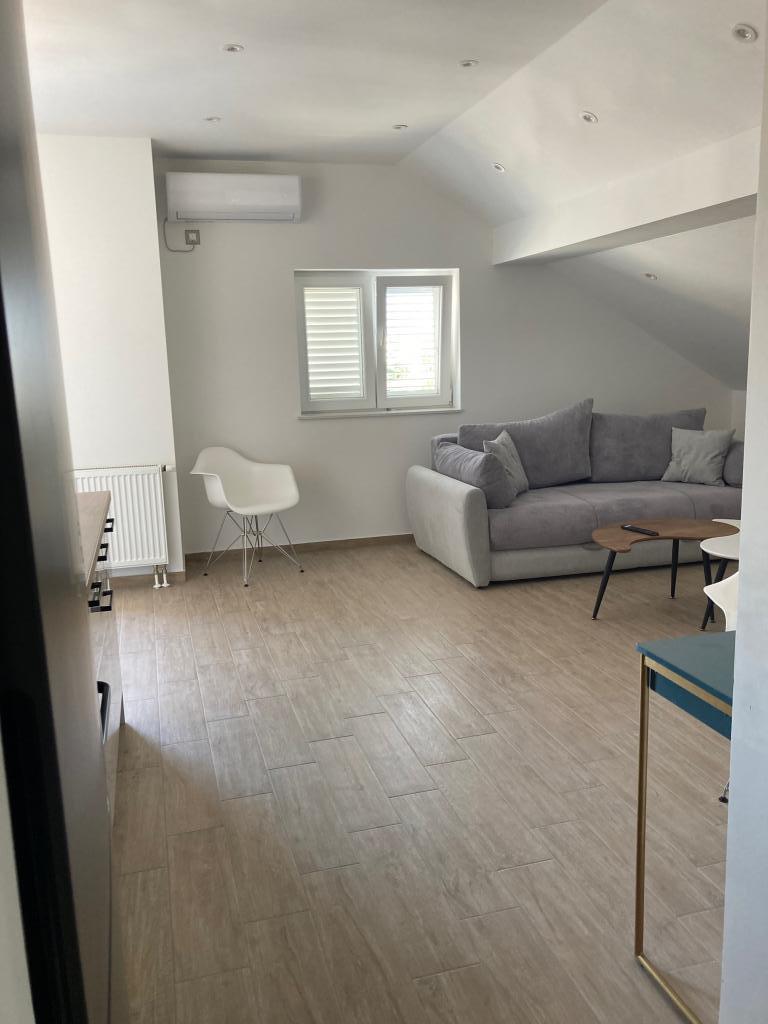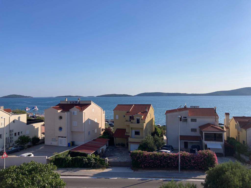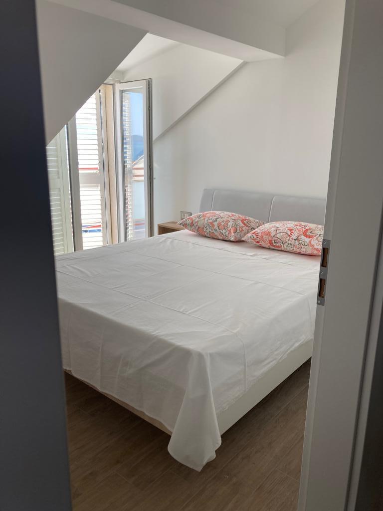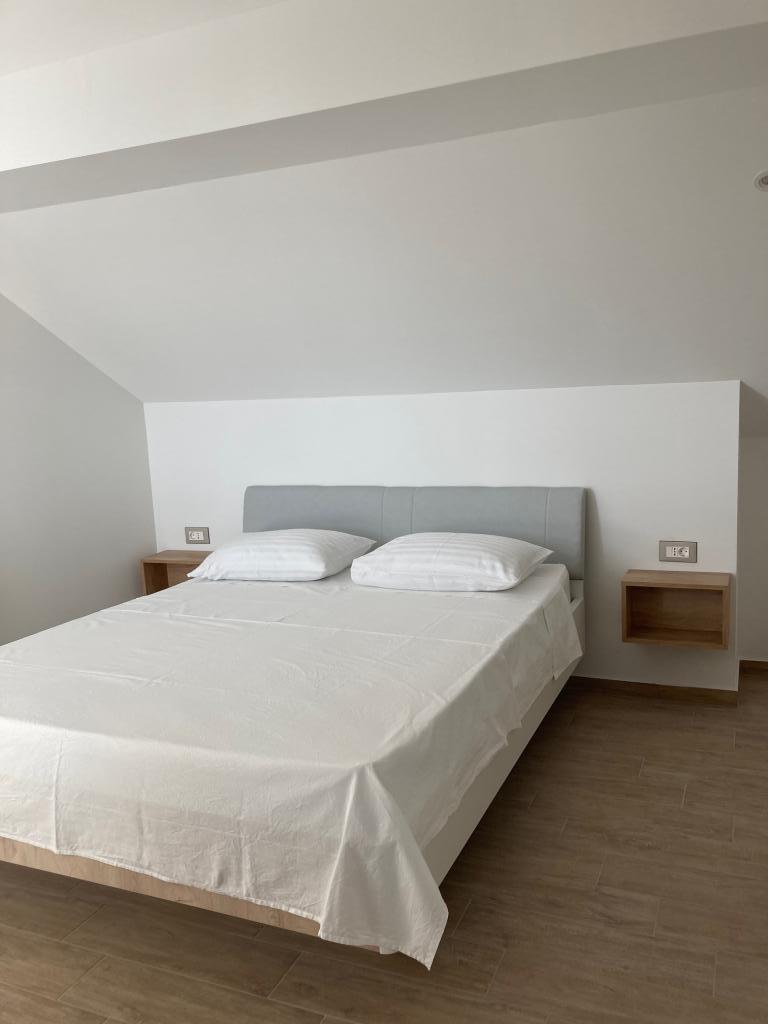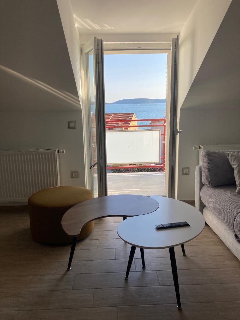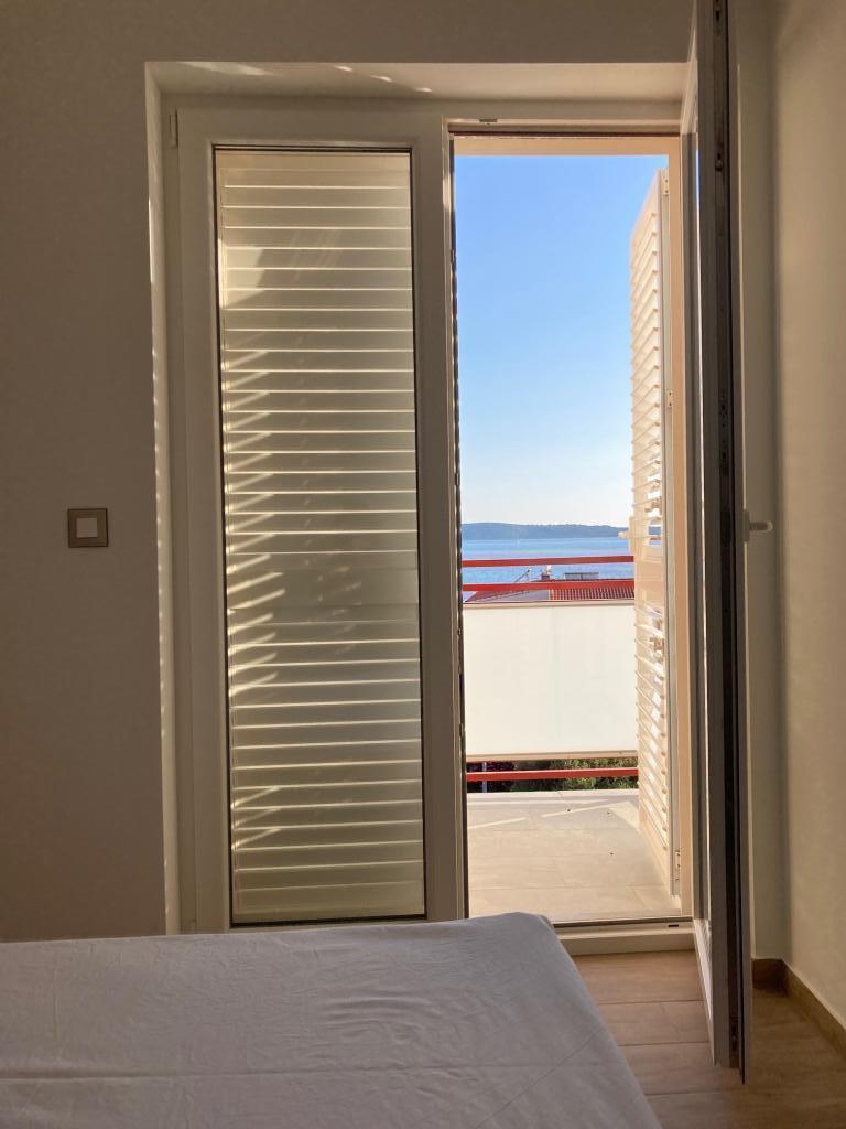 Dva nové, prostorné a moderně vybavené apartmány, druhá řada k moři. Všechny pokoje mají balkon s krásným výhledem na pláž, moře a okolí. Na pláž je to 5 minut chůze. Apartmány se nacházejí v podkroví rodinného domu. Hostitel bydlí o patro níže. Patra jsou propojena prostorným prosvětleným schodištěm a každé patro je samo o sobě bytovou jednotkou. Každý apartmán má svůj samostatný vchod.