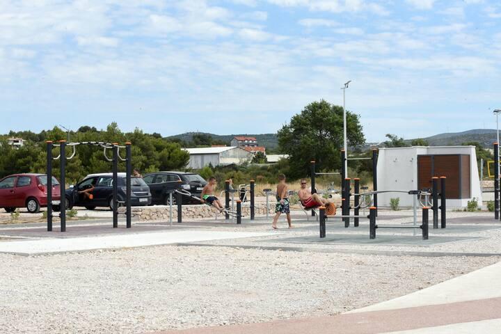Pokud hledáte pro moderní a dobře vybavené ubytování v Brodarica, s jedinečným výhledem na moře, u nás jste na správném místě! Náš dům se nachází jen 2 minuty chůze od pláže a 5 minut jízdy autem na nejkrásnější hotelový komplex Solaris. Můžete si vybrat: Apartmán 1 pro 3-4 osoby a Apartmán 2 pro 4-5 osob, kompletně zařízená k prázdniny Kuchyň a obývací pokoj, ložnice s manželským lůžkem, koupelna a krásnou terasou s výhledem na moře a okolní ostrovy. V obou apartmánech je vybavená klimatizací. Samozřejmě si můžete pronajmout celé zařízení. V přední části domu je vám středomořském stylu nově navržený gril s pavilonem.