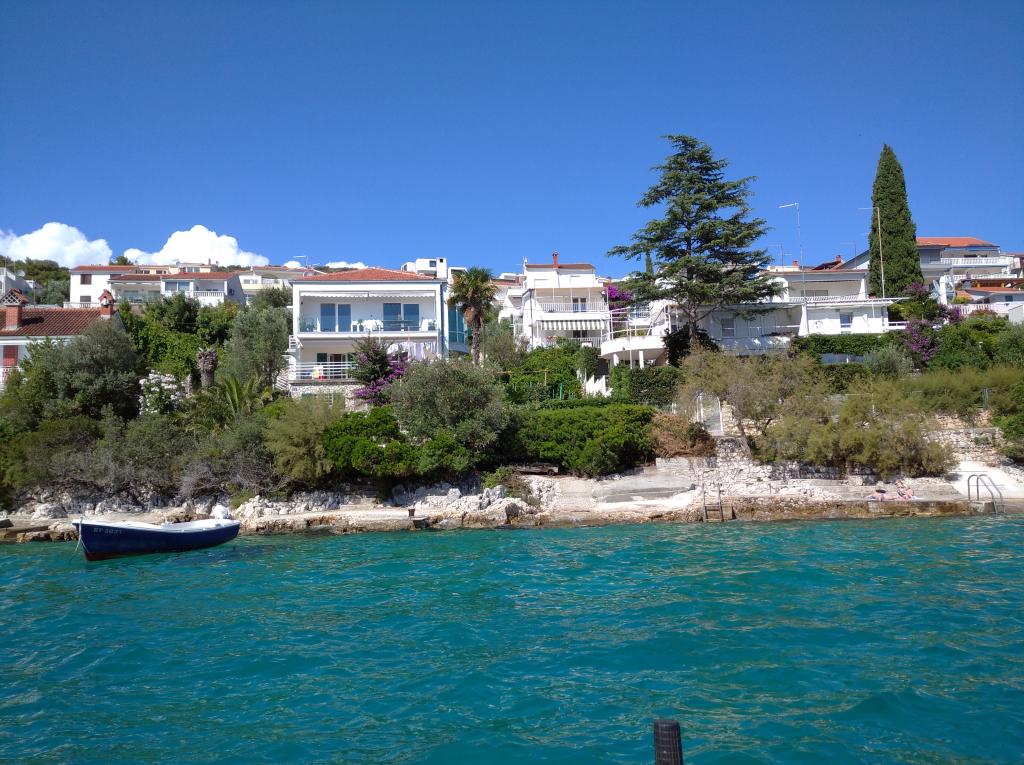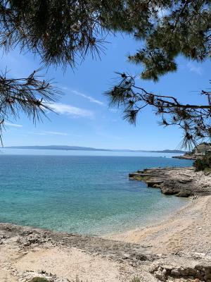 Apartmán je nově zařízený a plně vybavený a je jediným k pronájmu v objektu. Nachází se v 1. patře s terasou o rozloze 18 m2, s krásným výhledem na ostrov Šolta a moře, které je vzdálené 30 m. Apartmán se nachází v klidném a zeleném prostředí. Není zde žádný provoz vozidel ani chodců. Prostředí je obýváno ptáky a jejich zpěv je slyšet od rána do večera. Pláž je od apartmánu vzdálena 150 metrů nebo asi 3 minuty chůze. Pláže jsou rozmanité, od skalnatých, betonových, oblázkových až po písčité. Objekt je vzdálen 50 km od Národního parku Krka a Šibeniku a 30 km od Splitu. Získali jsme status MÍSTNÍHO HOSTITELE.