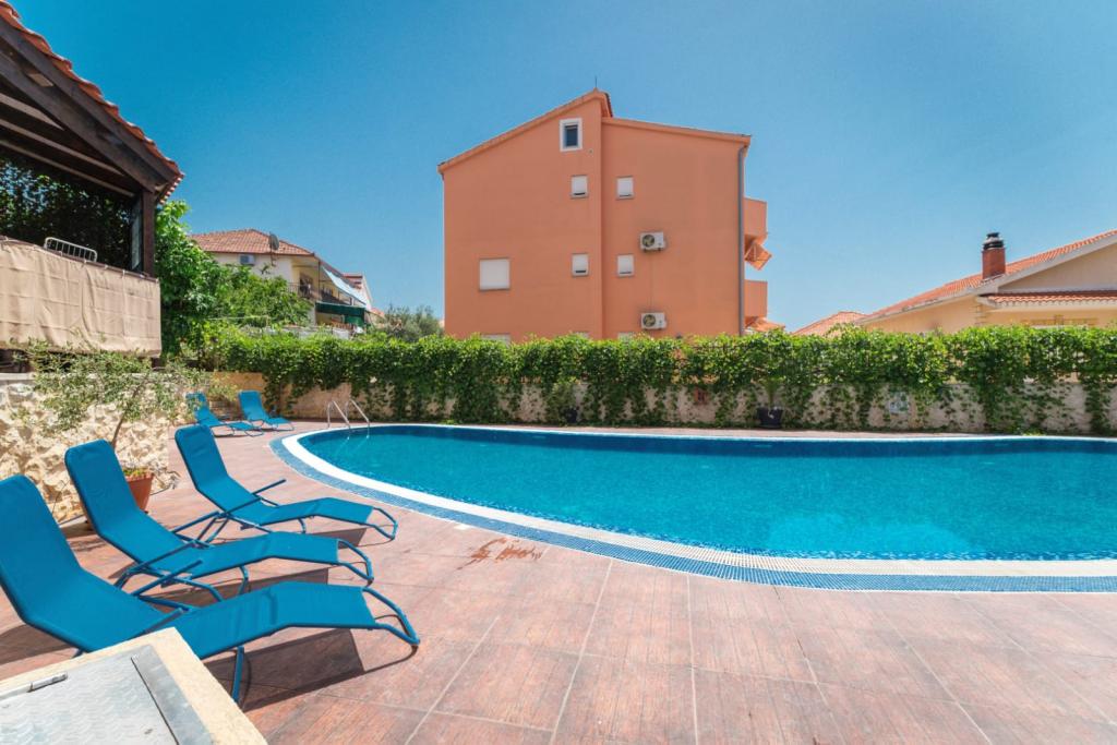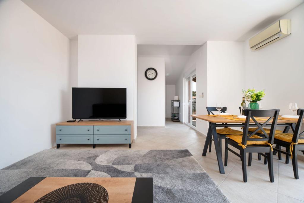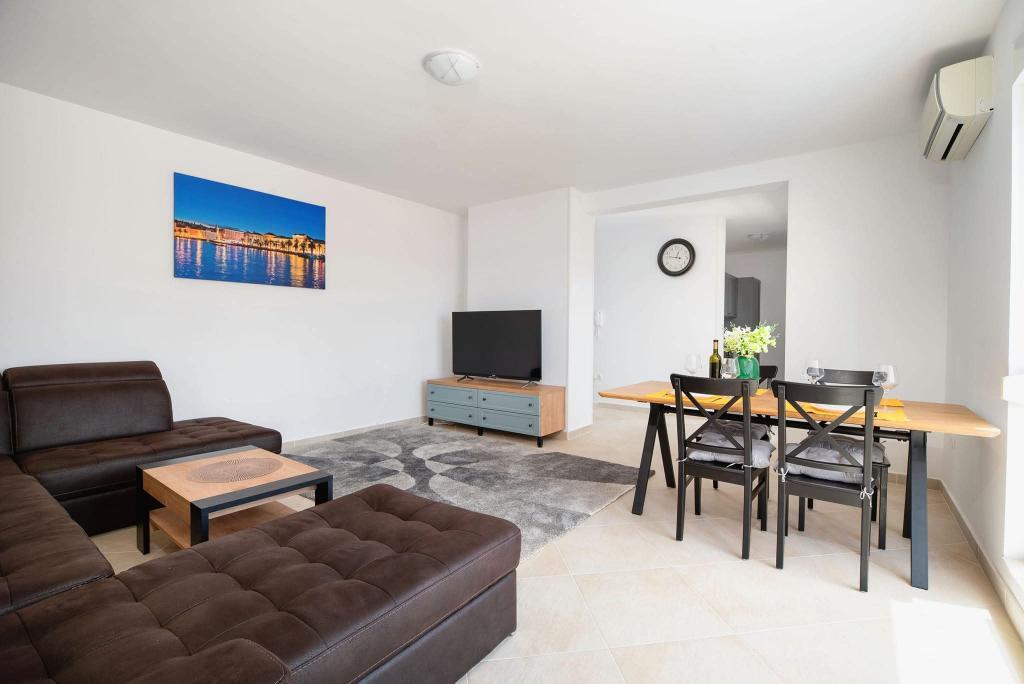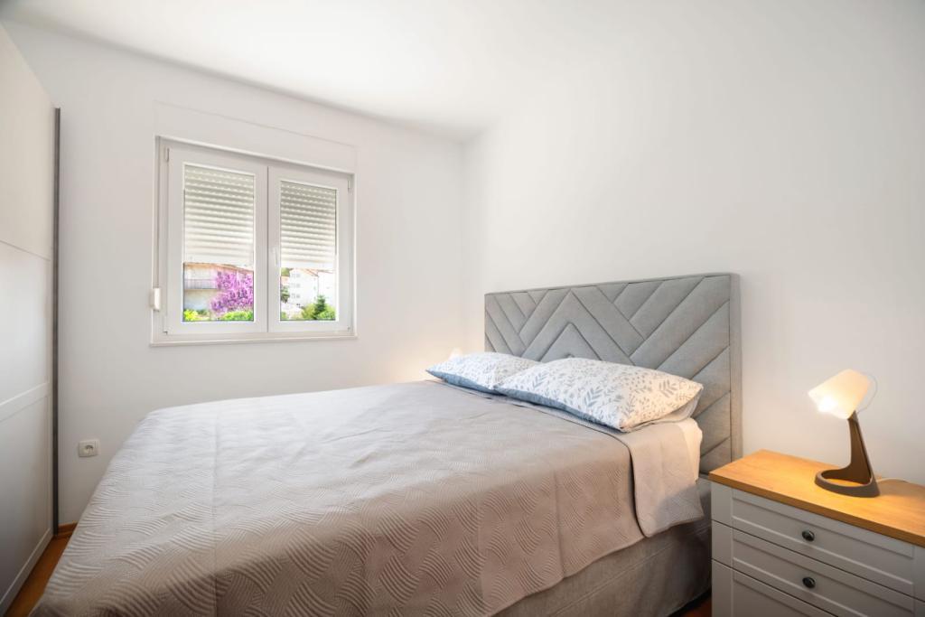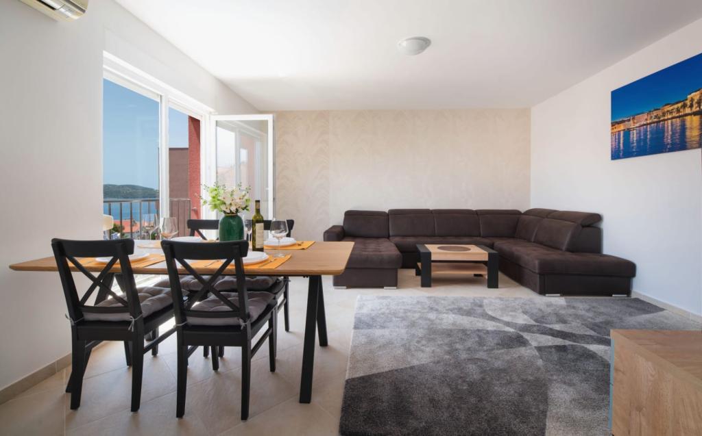 Apartmán se skládá ze 2 ložnic, koupelny, kuchyně, obývacího pokoje a terasy o celkové rozloze 68 m2. Každý pokoj má velkou manželskou postel a klimatizaci. Kuchyň má vše, co potřebujete k přípravě chutného jídla. Apartmán se nachází v klidné části ostrova. Kemp Rožac je vzdálen 150 m. V blízkosti se nacházejí supermarkety, restaurace a pekárny. Apartmán má k dispozici vlastní parkovací místo. Bazén je otevřen od 15.06. do 15.09. Vstup je možný od 8.00 do 20.00.