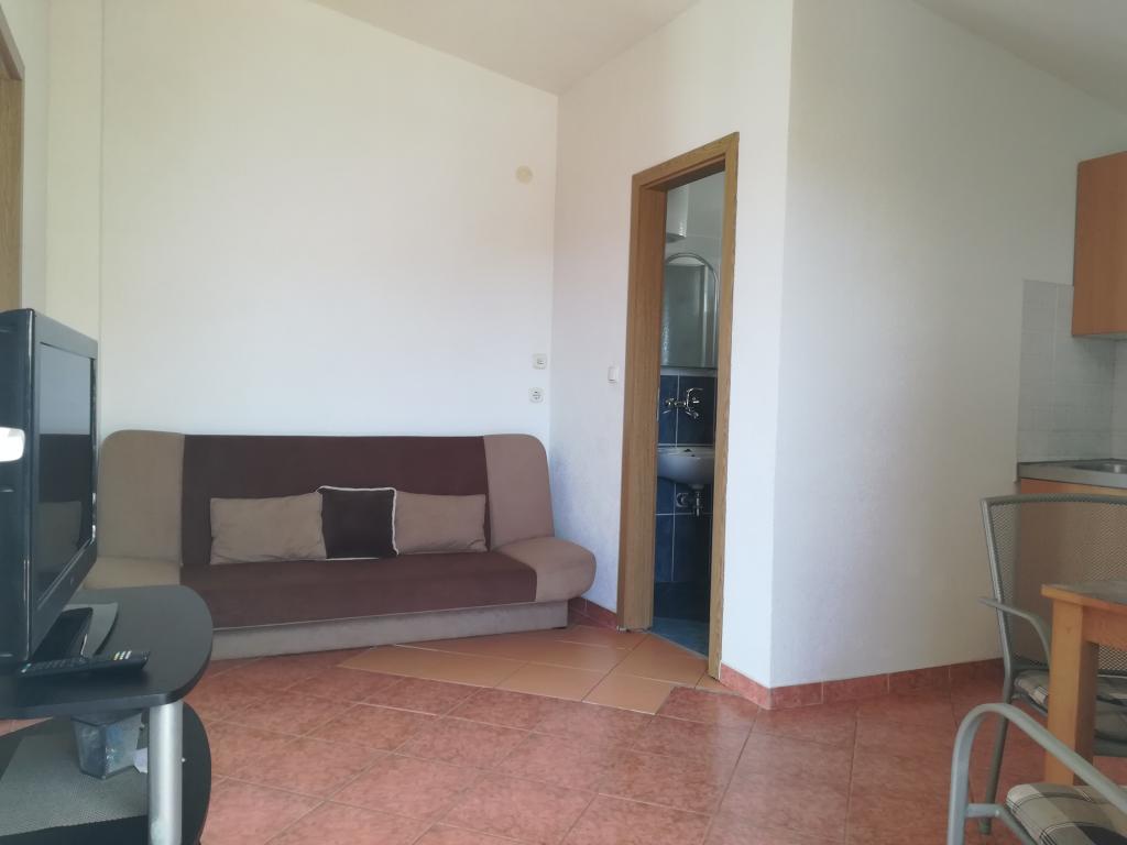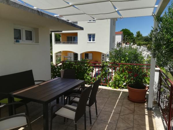 Moderně zařízený a vybavený byt v klidné části ostrova Čiovo, přesněji jeho jižní strana s výhledem na moře. Byt má 30 m2, terasu (15 m2) a balkon (9m2) s výhledem na moře. Parkovací místa se nacházejí přímo před bytem a na zahradě je gril. Objekt se nachází 100 metrů od moře a 10 minut chůze od restaurací a obchodů.