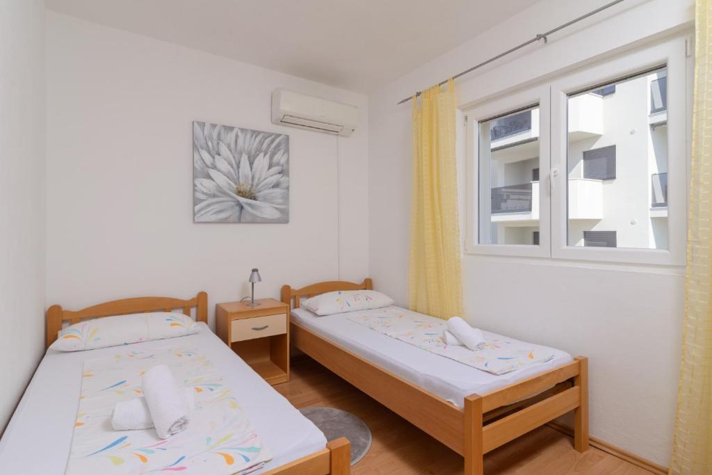 Apartmani Branka se nacházejí 4 minuty chůze od pláže Copacabana a nabízejí zahradu a klimatizované ubytování s balkonem a bezplatným Wi-Fi. Všechny apartmány mají terasu s výhledem na moře, satelitní TV, jídelní kout, dobře vybavenou kuchyň a vlastní koupelnu s vanou a fénem. K dispozici je také lednice, trouba, varná deska a rychlovarná konvice. Archeologický park Salona je od Apartmani Branka vzdálený 26 km a stadion Park Mladeži 29 km. Letiště Split je vzdálené 6 km a ubytování nabízí placenou kyvadlovou dopravu na letiště.