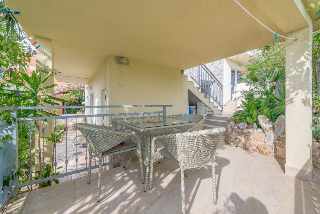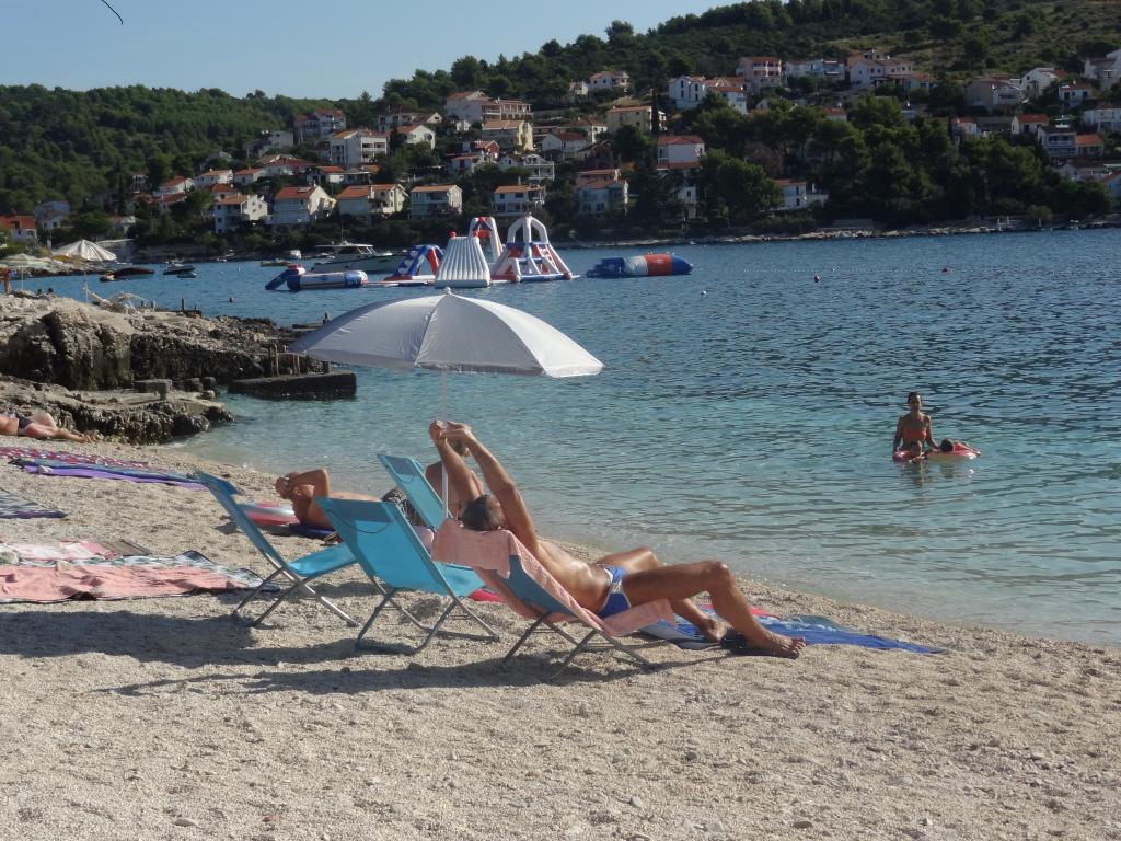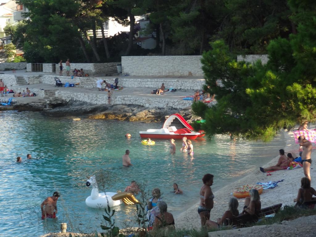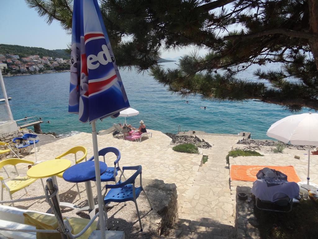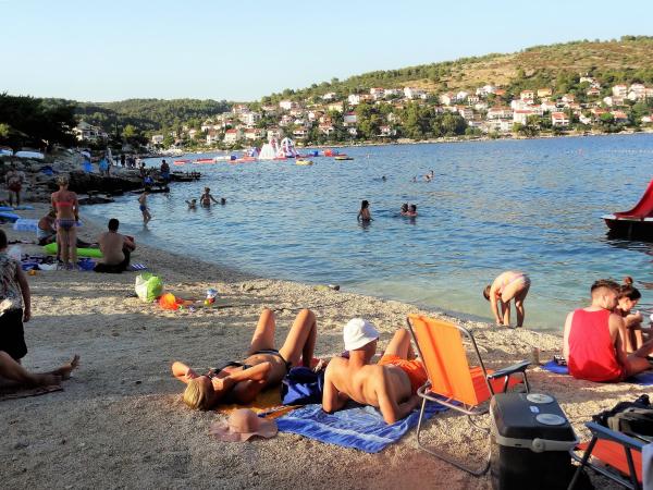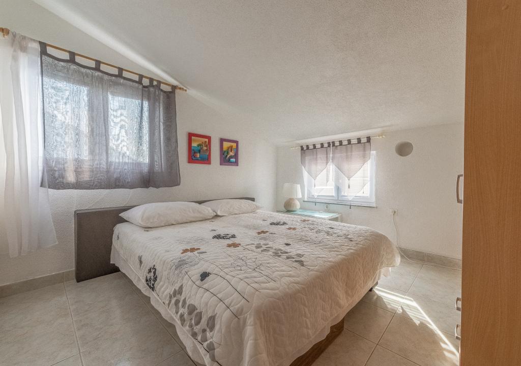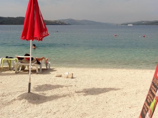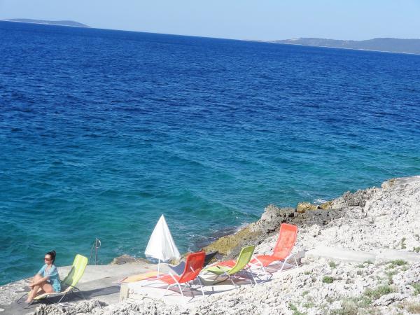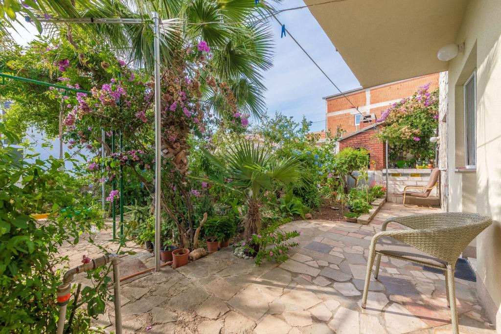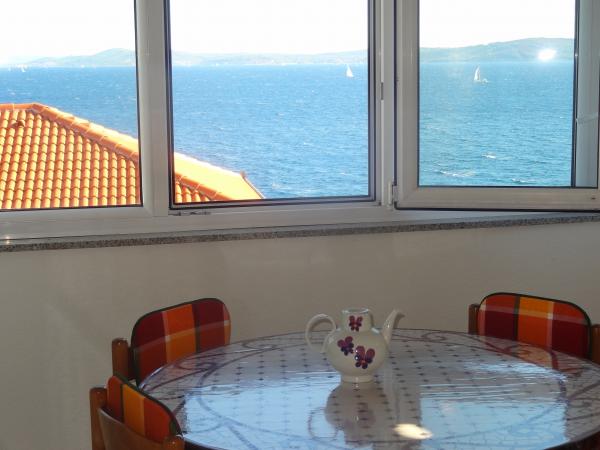 Dům se nachází na 3 podlažích. Každé patro má vlastní vchod, parkoviště a balkon se stolem a židlemi. Apartmán č. 1 (první patro) má jeden pokoj s manželskou postelí a obývací pokoj s manželskou postelí na kliknutí cvaknutím. Apartmán č. 2 (druhé patro) má pokoj s manželskou postelí a obývacího pokoje (soukromý pokoj) s luxusní pohovkou (160x 200) pro dvě osoby plus blagavona. Ap no. 3 je ve třetím patře s manželskou postelí a. Obývací pokoj (v soukromí) s luxusním pohovkou (160 X200) pro dva a navíc stolování. Moře a nejbližší pláž je přesně 70 metrů. Dům má výhled na otevřené moře a ostrovy. Pěšky se můžete dostat na trh po dobu 3 minut, 5 minut restaurace, kostely, supermarkety, trhy, banky a lékaři se lze dostat za 15 minut. Aeodrom je udaljen10 kilometrů. Apartmány jsou dobře vybavené. Jsou 60 metrů od první pláže, v klidné jižní slunné straně ostrova Čiovo. S přijatelnou cenu as bohatým kulturním zábava dovolenou ,