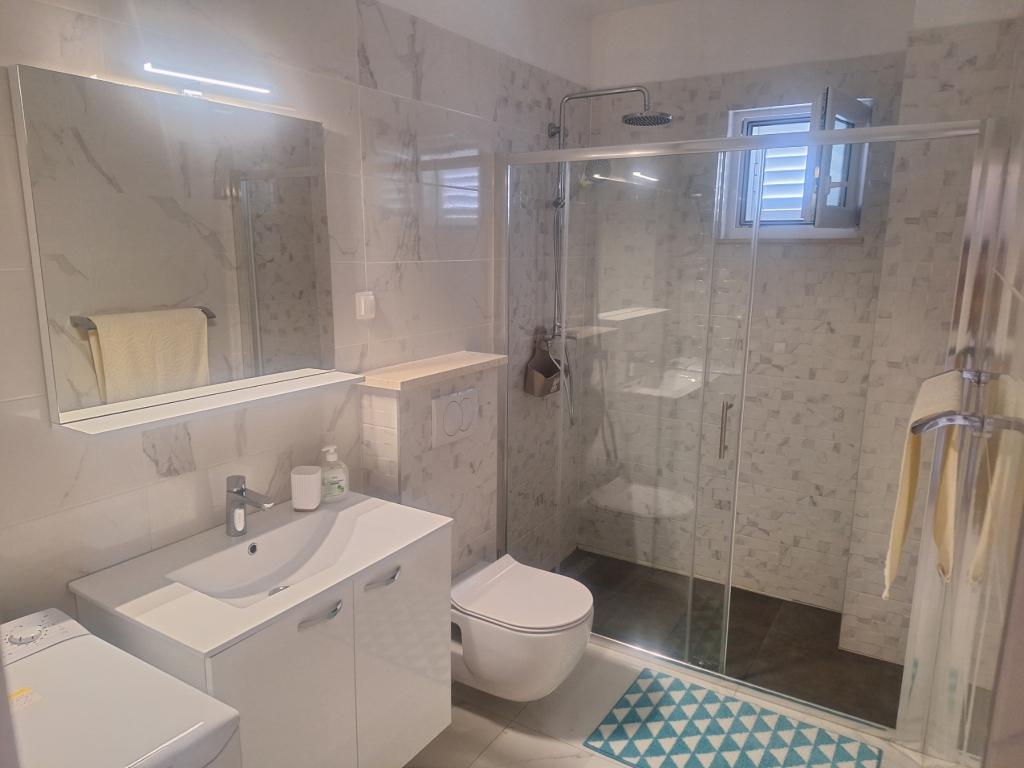 Apartmán byl při příjezdu uklizený a čistý, zcela odpovídal fotografiím a popisu v inzerátu. Je prostorný, moderní a příjemný na pobyt, postele jsou velmi pohodlné, kuchyň je dobře vybavená a velká terasa s krásným výhledem zanechává zvláštní dojem. Dalším plusem je bezpečné, uzamčené parkování. Poloha je skvělá, pláž je jen 2 minuty chůze. I když je skalnatá, vyhovovala nám a v blízkosti jsou vhodné pláže pro děti, na které se snadno dostanete pěšky. Ostrov navíc nabízí mnoho dalších pláží, takže o výběr není nouze. V bezprostřední blízkosti se nachází velký trh Tommy a centrum Okrugu s lékárnou, pekárnou, poštou a veškerým dalším vybavením je také velmi blízko. Město Trogir je snadno dostupné autem nebo lodí, kde můžete podniknout nějaké větší nákupy nebo prozkoumat město. Hostitelé byli velmi přátelští a vždy k dispozici, ale nenápadní, což bylo pro nás obzvlášť výhodné. Celkově vzato, apartmán i hostitelé plně splnili naše očekávání a naplnili inzerát. Rozhodně doporučujeme!
