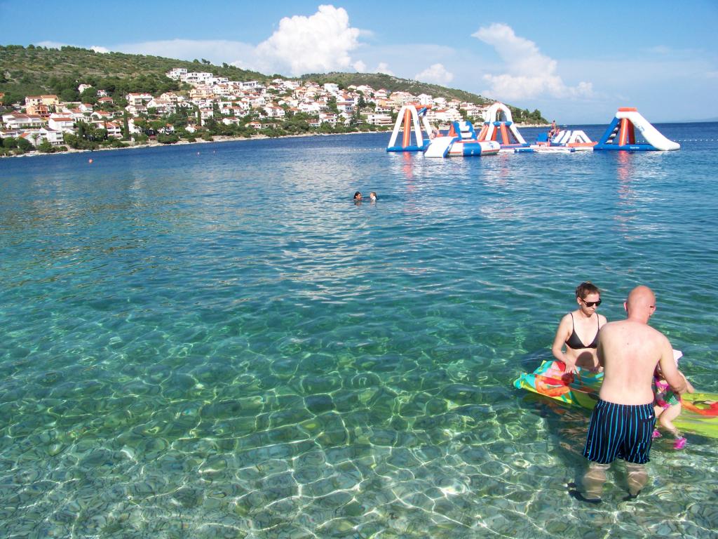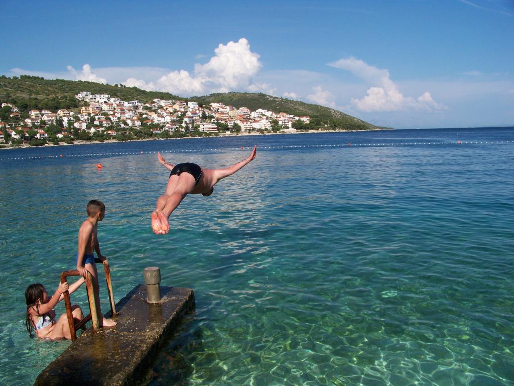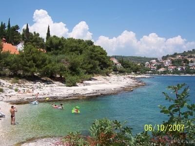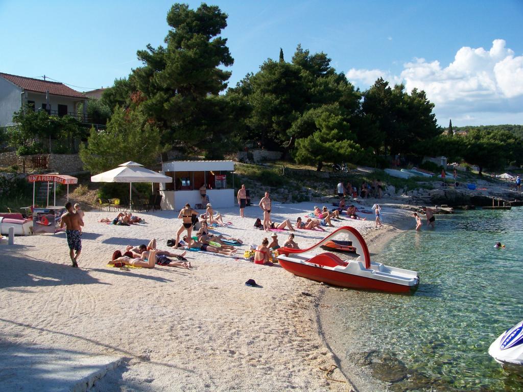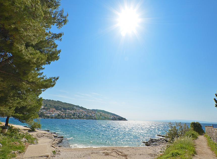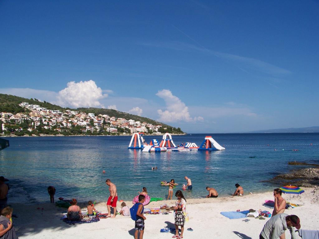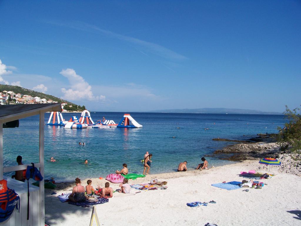 Čiovo, jižní strana, záliv Mavarštica, pronajmeme nové apartmány pro 3-4 osoby, SAT LED TV Samsung 32 (82 cm), DVD, Mikrovlnná trouba, Mixér, Klimatizace, Wi-Fi rychlý optický internet. Všechny apartmány mají vlastní parkovací místa ve stínu, gril a jsou jen 50 m od pláže (na obrázku), vhodné pro malé děti. Apartmány jsou 4 km od Trogiru, města památek pod ochranou UNESCO. Všechny apartmány mají velkou terasu s výhledem na moře a další balkon v ložnici. Nejbližší restaurace je vzdálena 70 m. Vzdálenost do aquaparku je 100 m. Vzdálenost do nejbližšího obchodu je pouhých 400 m. Nejbližší lékárna, bankomat, velký supermarket, tržnice a bankomat jsou 900 m. Zdarma je Vám k dispozici: zahradní houpačka, velká dětská dřevěná houpačka, doplňková zahradní sprcha, lavička u grilu, slunečník na terasu. Hosté mají na dvoře k dispozici stůl Sponeta na stolní tenis se sadou raket a elektronických šipek. Na Smart TV lze sledovat polské, německé, anglické, francouzské, španělské, italské... volně vysílané SAT programy a nainstalována je i aplikace GoNet TV (Lepša TV), která hostům umožňuje sledovat slovinské, české, slovenské, maďarské a ukrajinské programy.