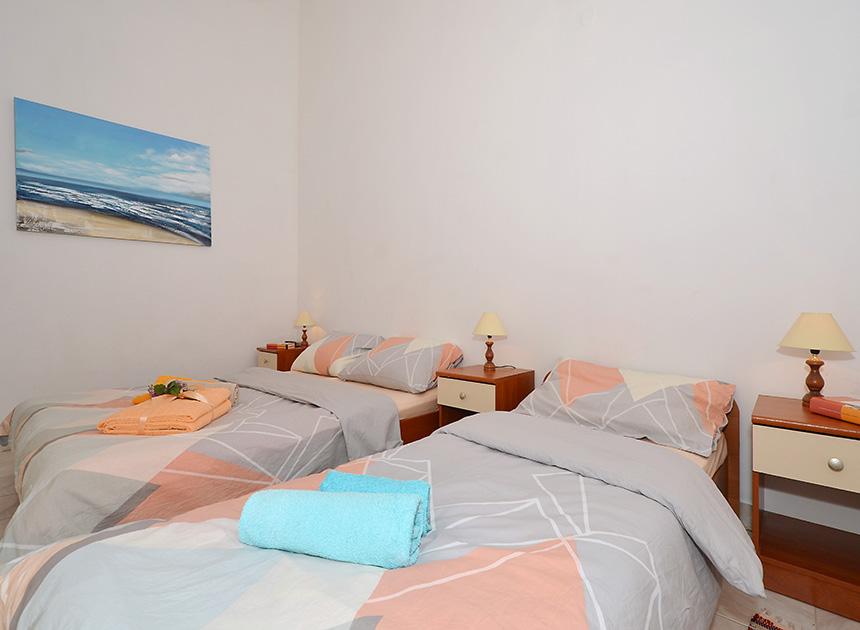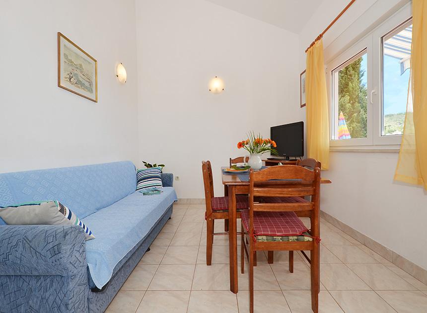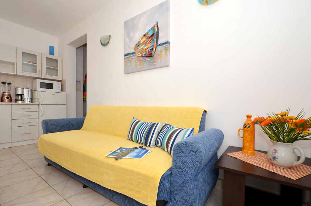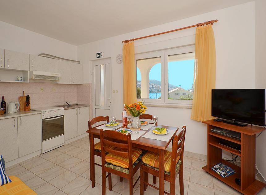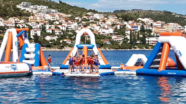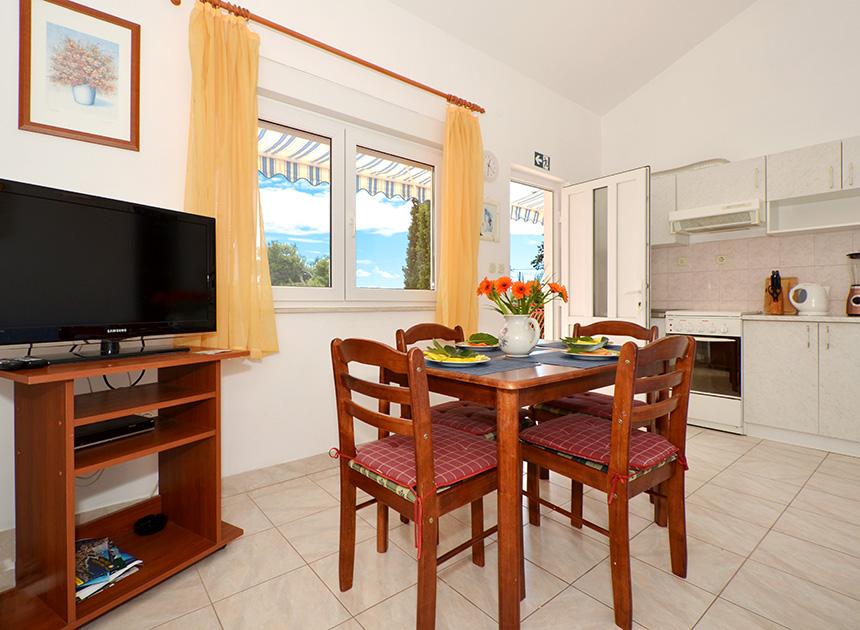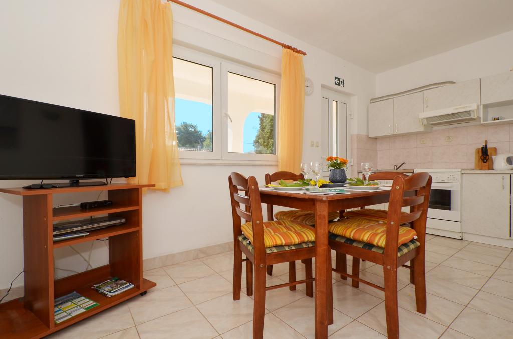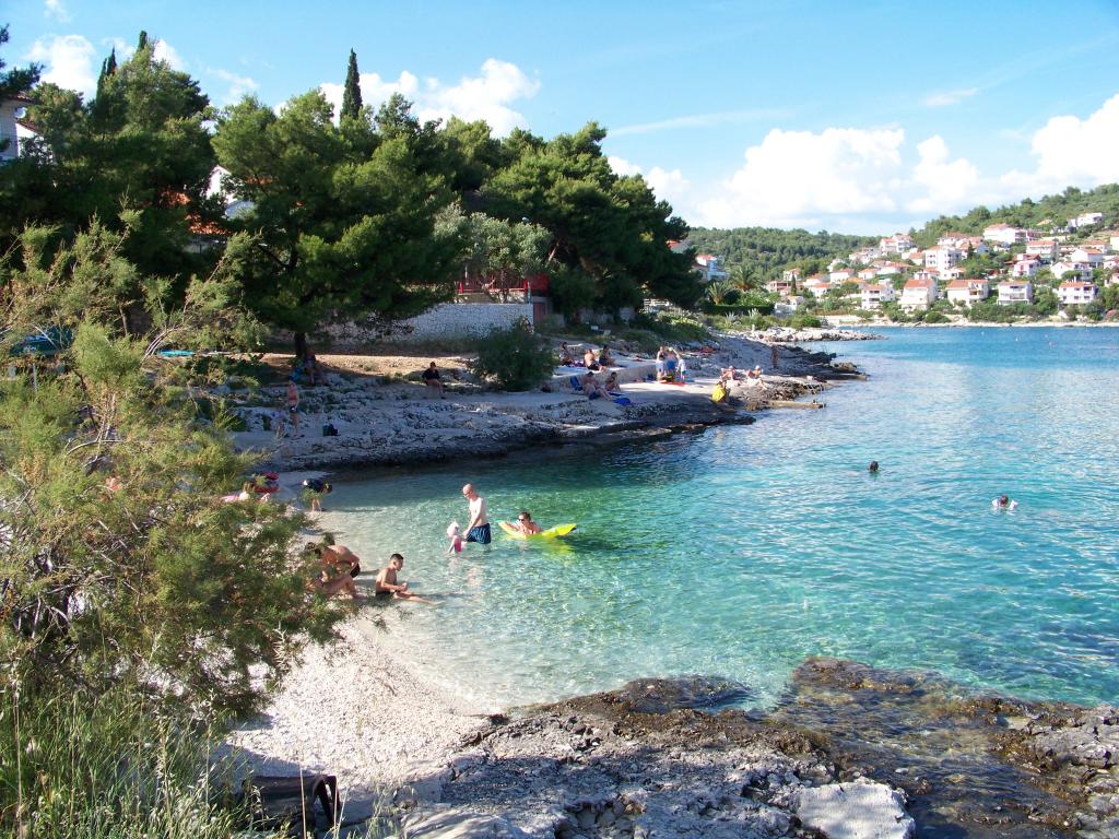 Čiovo, jižní strana, záliv Mavarštica, pronajmeme nové apartmány pro 3-4 osoby, SAT LED TV Samsung 32 (82 cm), DVD, Mikrovlnná trouba, Mixér, Klimatizace, Wi-Fi rychlý optický internet. Všechny apartmány mají vlastní parkovací místa ve stínu, gril a jsou jen 50 m od pláže (na obrázku), vhodné pro malé děti. Apartmány jsou 4 km od Trogiru, města památek pod ochranou UNESCO. Všechny apartmány mají velkou terasu s výhledem na moře a další balkon v ložnici. Nejbližší restaurace je vzdálena 70 m. Vzdálenost do aquaparku je 100 m. Vzdálenost do nejbližšího obchodu je pouhých 400 m. Nejbližší lékárna, bankomat, velký supermarket, tržnice a bankomat jsou 900 m. Zdarma je Vám k dispozici: zahradní houpačka, velká dětská dřevěná houpačka, doplňková zahradní sprcha, lavička u grilu, slunečník na terasu. Hosté mají na dvoře k dispozici stůl Sponeta na stolní tenis se sadou raket a elektronických šipek. Na Smart TV lze sledovat polské, německé, anglické, francouzské, španělské, italské... volně vysílané SAT programy a nainstalována je i aplikace GoNet TV (Lepša TV), která hostům umožňuje sledovat slovinské, české, slovenské, maďarské a ukrajinské programy.