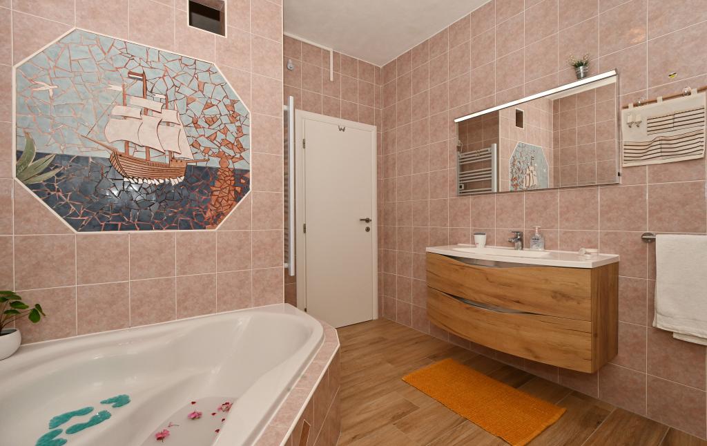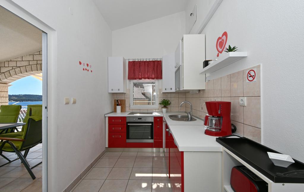 Villa Ljube se nachází v bezprostřední blízkosti autokempu Rožac, ve vzdálenosti 1,5 km od centra Trogiru. Celková kapacita vily Ljuba je 15 osob. Apartmány jsou vybaveny SAT TV a WLAN internetem. Hosté mohou využít gril v objektu. V prvním patře vily je velký apartmán s krásným výhledem na moře. Byt má prostorný balkon s výhledem na moře. Ve druhém patře se nachází byt moderního designu s prostornou terasou, která pojme 8 osob. Majitelé domu bydlí v přízemí a jsou vždy připraveni zodpovědět všechny dotazy a poskytnout pomoc. Balkon nabízí krásný výhled na moře a celý záliv. Villa Ljube je od pláže 150 m. Vila se nachází v klidné boční ulici bez přílišného hluku a dopravy.