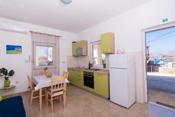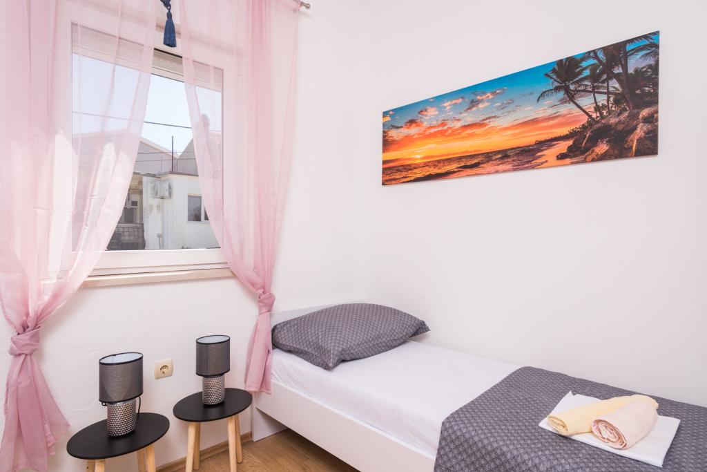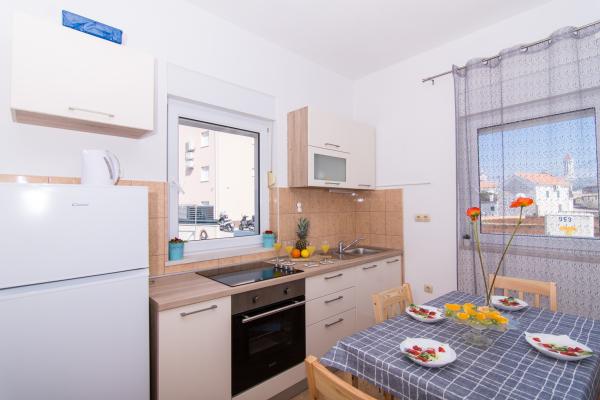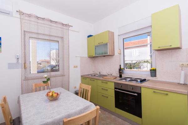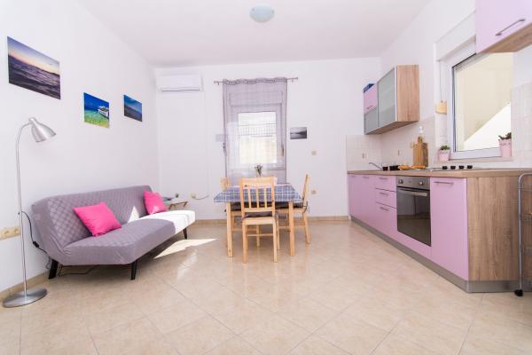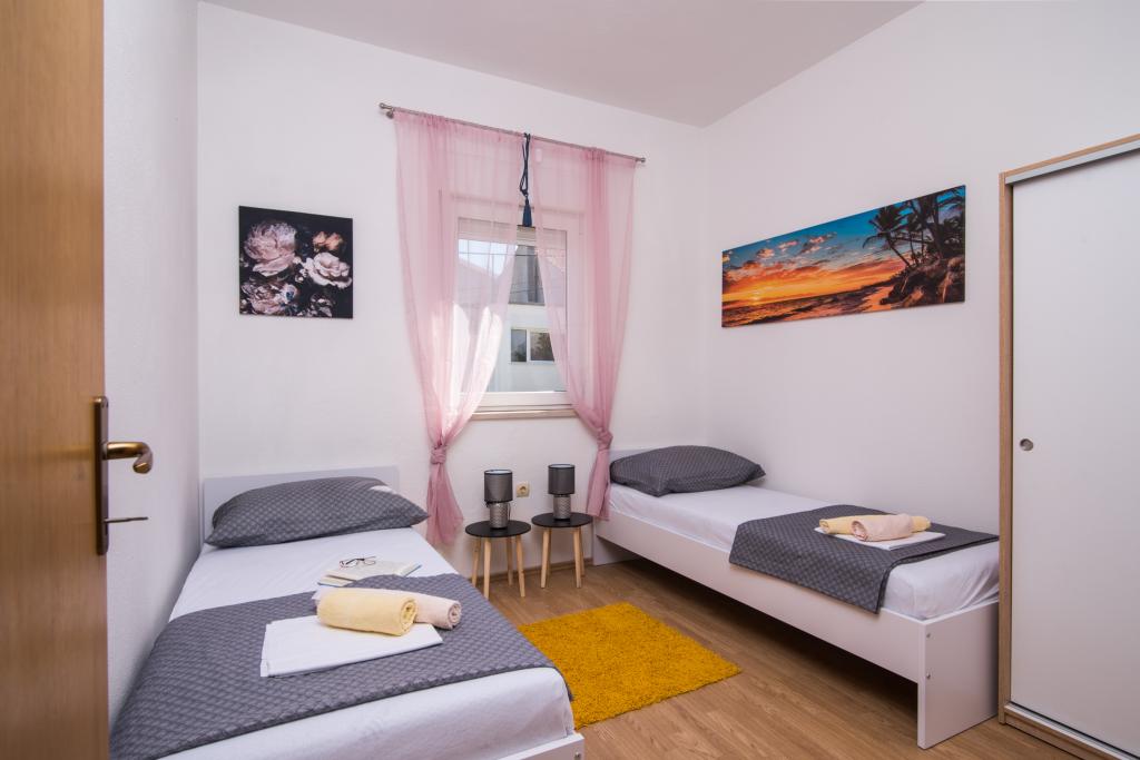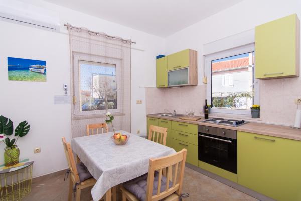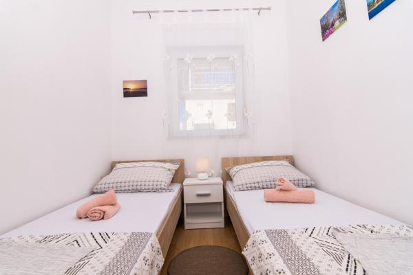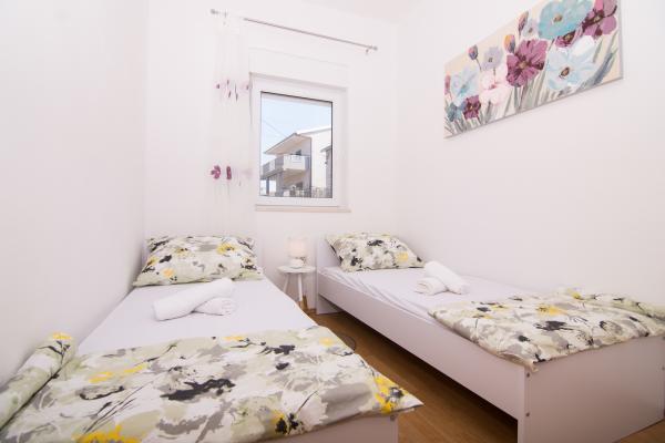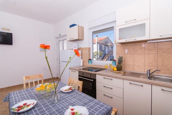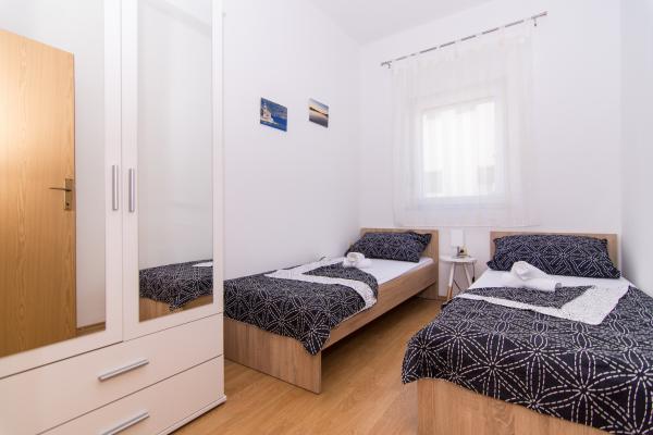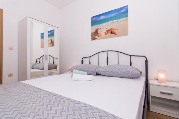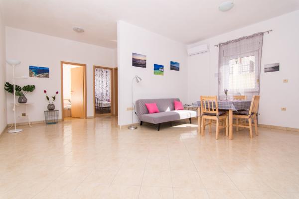 Plně a moderně vybavené apartmány v klidné části Okrug Gornji, 150 metrů od centra města. Apartmány obsahují vše, co byste mohli potřebovat a co by vám mělo zpříjemnit pobyt. Centrum samotného města - 5 minut chůze (v blízkosti pošty, trhu, obchodů, kaváren, restaurací, lékárny) a blízkost všech pláží činí náš objekt ještě zajímavějším a atraktivnějším. Klidné okolí objektu vám umožní zpříjemnit si pobyt a klidně si vychutnat ranní kávu na terase před apartmánem.