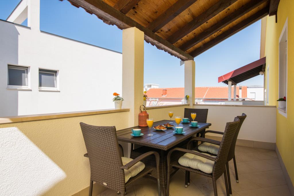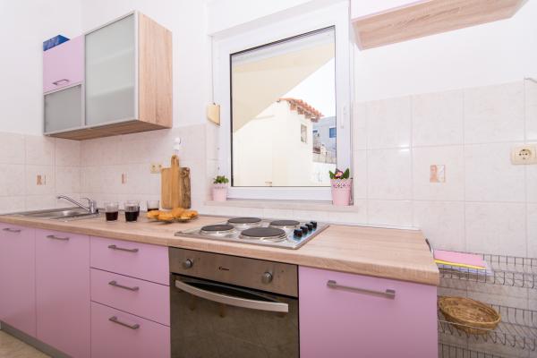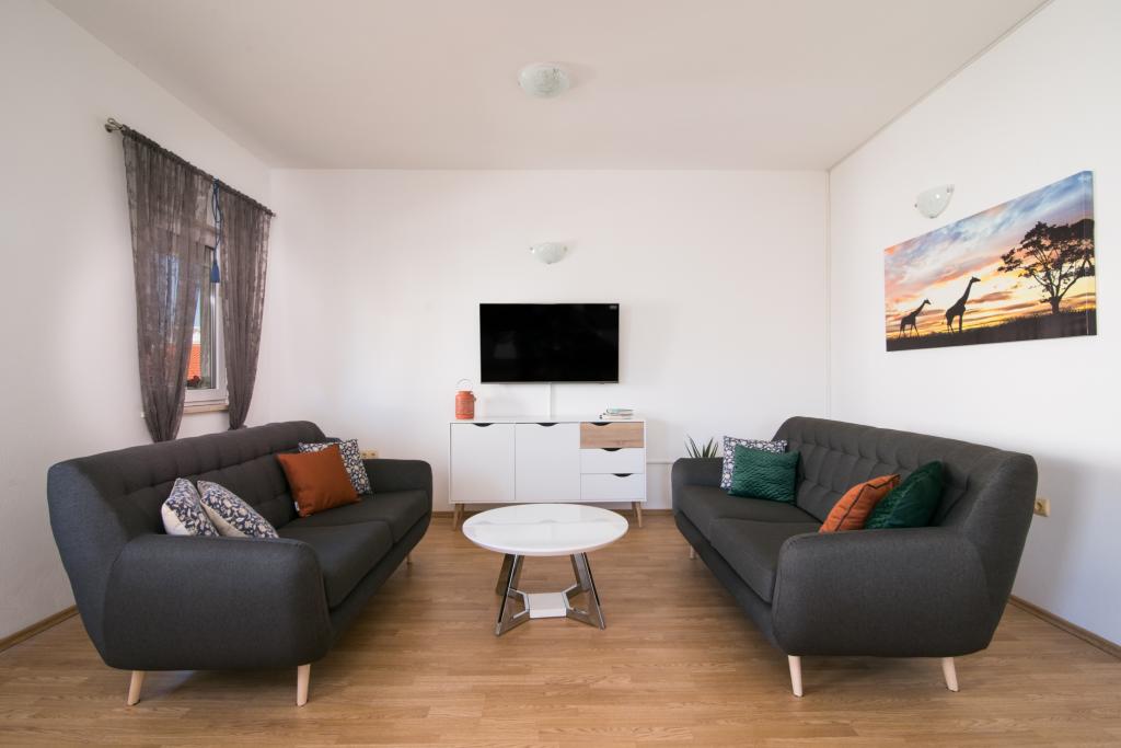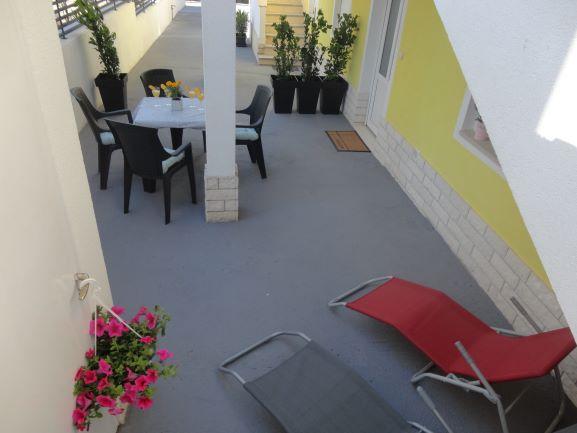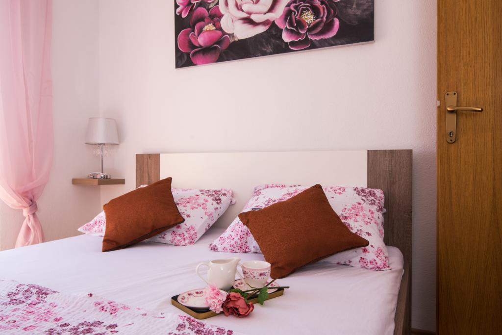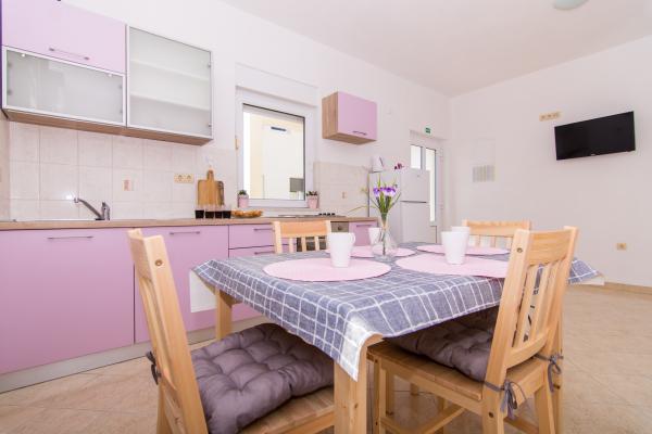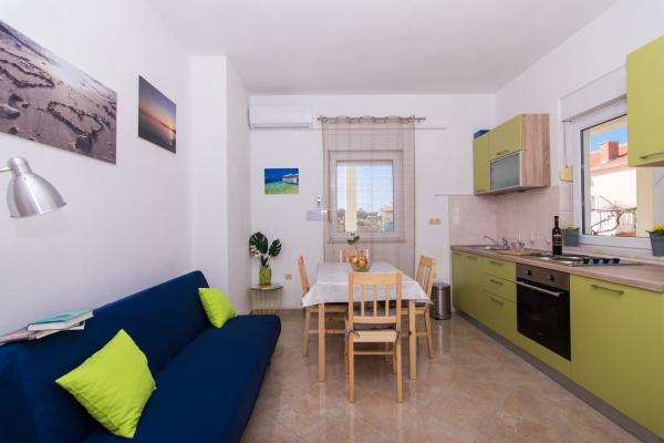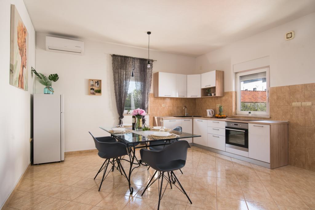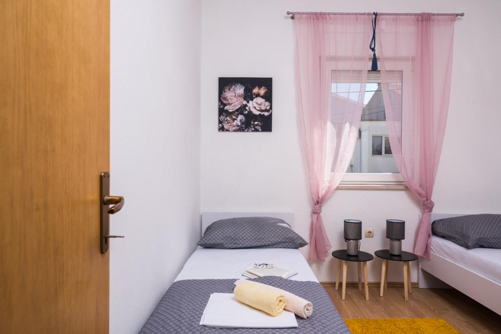Plně a moderně vybavené apartmány v klidné části Okrug Gornji, 150 metrů od centra města. Apartmány obsahují vše, co byste mohli potřebovat a co by vám mělo zpříjemnit pobyt. Centrum samotného města - 5 minut chůze (v blízkosti pošty, trhu, obchodů, kaváren, restaurací, lékárny) a blízkost všech pláží činí náš objekt ještě zajímavějším a atraktivnějším. Klidné okolí objektu vám umožní zpříjemnit si pobyt a klidně si vychutnat ranní kávu na terase před apartmánem.
