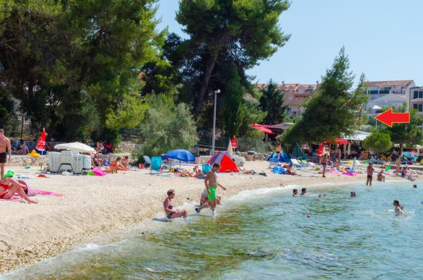 Pěkné vlastníků. Klidné části města. 15 minut do centra města. 10 minut jízdy autem od Trogiru. 40 m od pláže, s velmi malými kameny. Čisté a pěkné pokoje. Gospadarz dělá dobré víno. Doporučujeme byt Milka, měli jsme pěknou dovolenou.