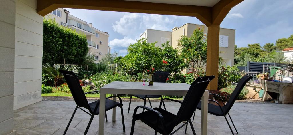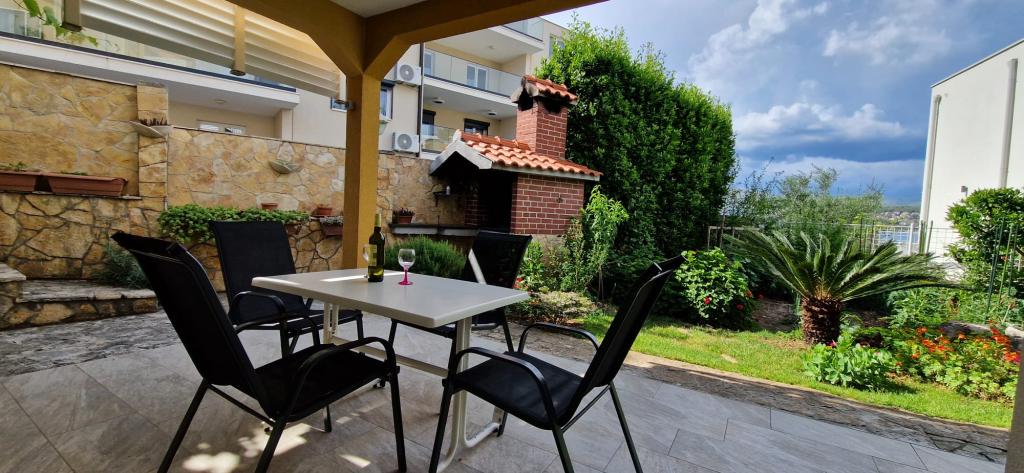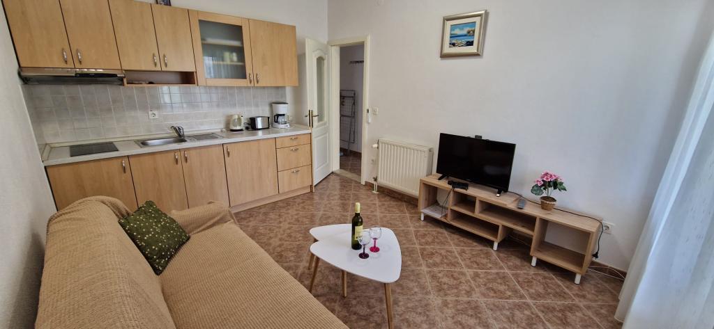 Tento apartmán nás příjemně překvapil. Je čistý a prakticky zařízený. Má výbornou polohu, moře je blízko, nejbližší pláž 30 m, na pláži 2 restaurace, zmrzlina... Má velkou terasu na pěkně upravený dvůr. V blízkosti se nachází obchod s potravinami. Majitelé Milka a Josip jsou milí, přátelští, pohostinní lidé. Cítili jsme se u nich velmi dobře. Pokud bychom ještě vybrali tuto lokalitu v Chorvatsku, určitě bychom zvolili znovu tento apartmán, nad jiným ubytováním bychom ani nerozmýšleli. Super!