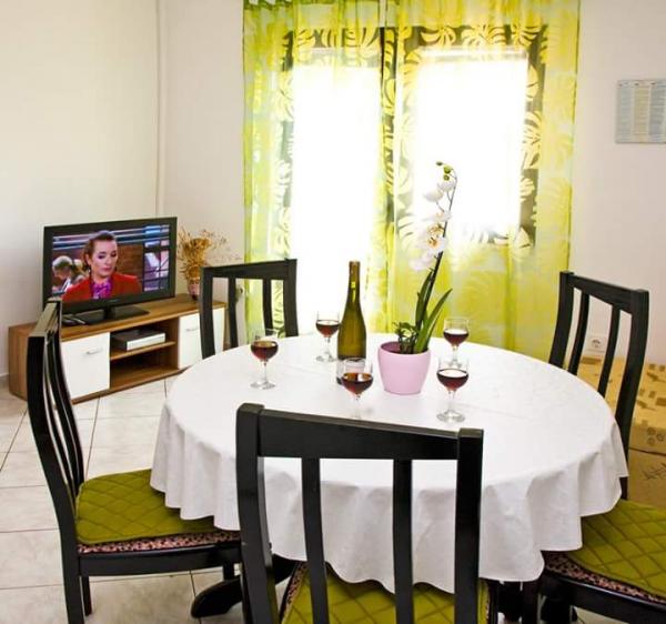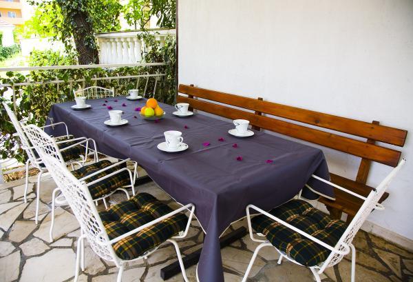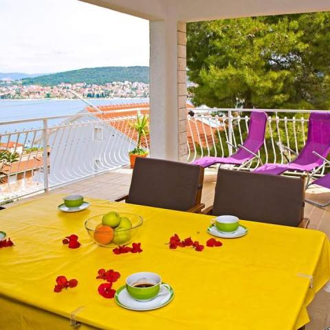 Apartmány se nacházejí v Okrug Gornji, na adrese Planikovica VII / 3. Vlastnosti, které charakterizují prostor, kde se apartmány nacházejí, lze prezentovat jako: čisté moře, nedotčená příroda, ideální místo k pobytu pro rodiny s dětmi a přátele. Každý apartmán má ze svých balkonů a prostorných teras krásný výhled na moře a přírodu. Každý apartmán má vlastní parkoviště, klimatizaci a právo na neomezený internet zdarma. Vzdálenost od starého města Trogir je pouze 4,5 km. Nedaleko se nachází 2 km dlouhá pláž Copacabana. Kromě příjemného pobytu zde najdete různé zábavné aktivity pro všechny věkové kategorie. Na hlavní, již zmíněné pláži je velké množství barů, restaurací a obchodů. Pokud hledáte příjemný pobyt na klidném místě, v blízkosti moře se slunečními paprsky bez hluku aut, pak jste na správném místě Ap. 1 má 3 pokoje každý pokoj má koupelnu a balkon Ap. 2 má 3 pokoje se 2 koupelnami Ap 3 má 3 pokoje VÍTEJTE