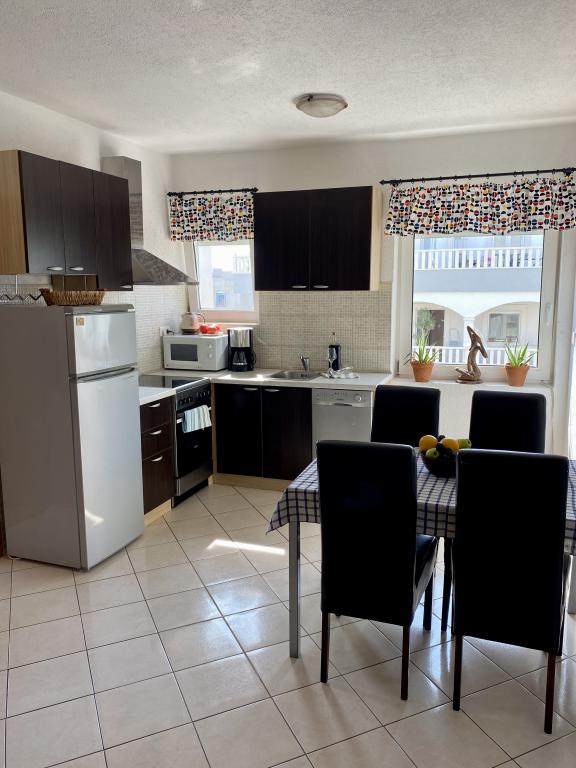 Velmi pohodlný byt vybavený různými pomůckami. Byt má velkou terasu s otevřeným výhledem na oblohu a druhý balkon skvělý pro ranní kávu a výhled na moře. Klidné prostředí, vhodné pro rodiny s dětmi. Výhodou jsou dvě kamenité pláže a pláž s oblázky. Toto je podruhé, co jsme zde zůstali a vrátíme se znovu.