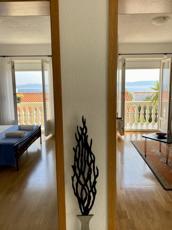 Pro nás perfektní ubytování. K dispozici bylo čerstvé, čisté a veškeré vybavení potřebné pro snídani a večeři. Lednice s mrazákem, mikrovlnná trouba, kávovar. Pračka, klimatizace a sprcha atd. Blízko moře, možná něco málo přes 100 m, mnoho míst ke koupání je velmi blízko, můžete se koupat podél celého pobřeží, většinou skály, ale i pláže. Bydleli jsme ve 2. patře. 2 balkony ve 2 různých směrech s výhledem na moře. Klidné a tiché, v blízkosti několika restaurací, v pěší vzdálenosti od obchodů a restaurací, pláže a půjčovny aut. Pokud chcete dosáhnout nočního života, jako je Trogir, je to blízko taxíkem. Vrátíme se. Děkuji Darko za nádhernou dovolenou. Darku i byt můžeme vřele doporučit. Je také velmi přátelský a dal dobré tipy o jídle a památkách. Anne a Johan s rodinou.