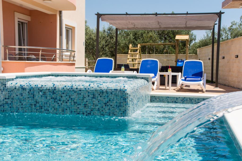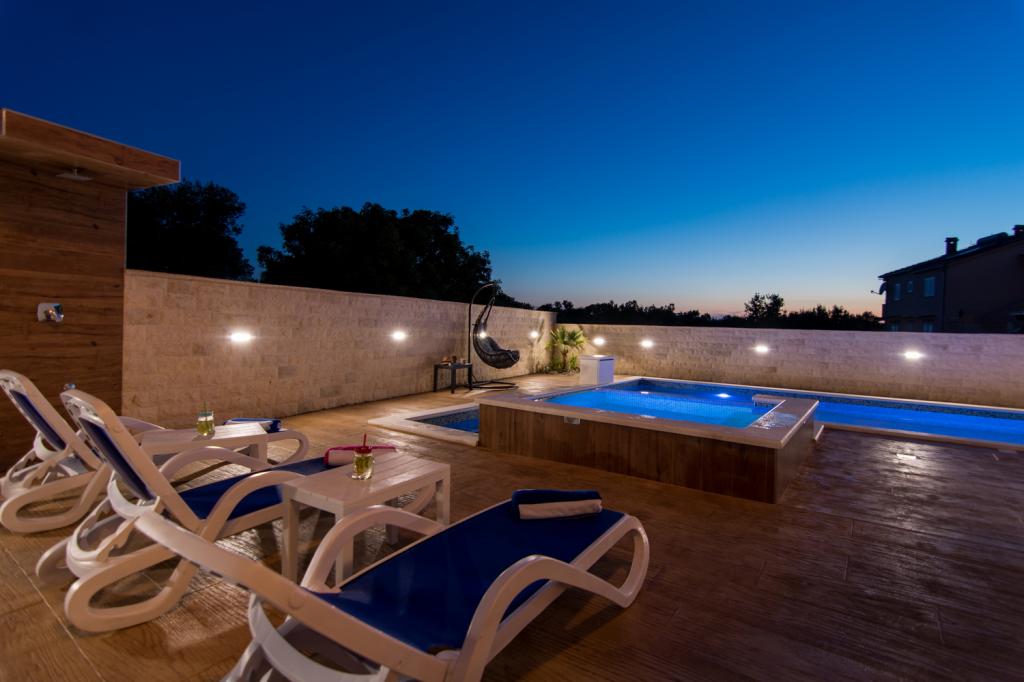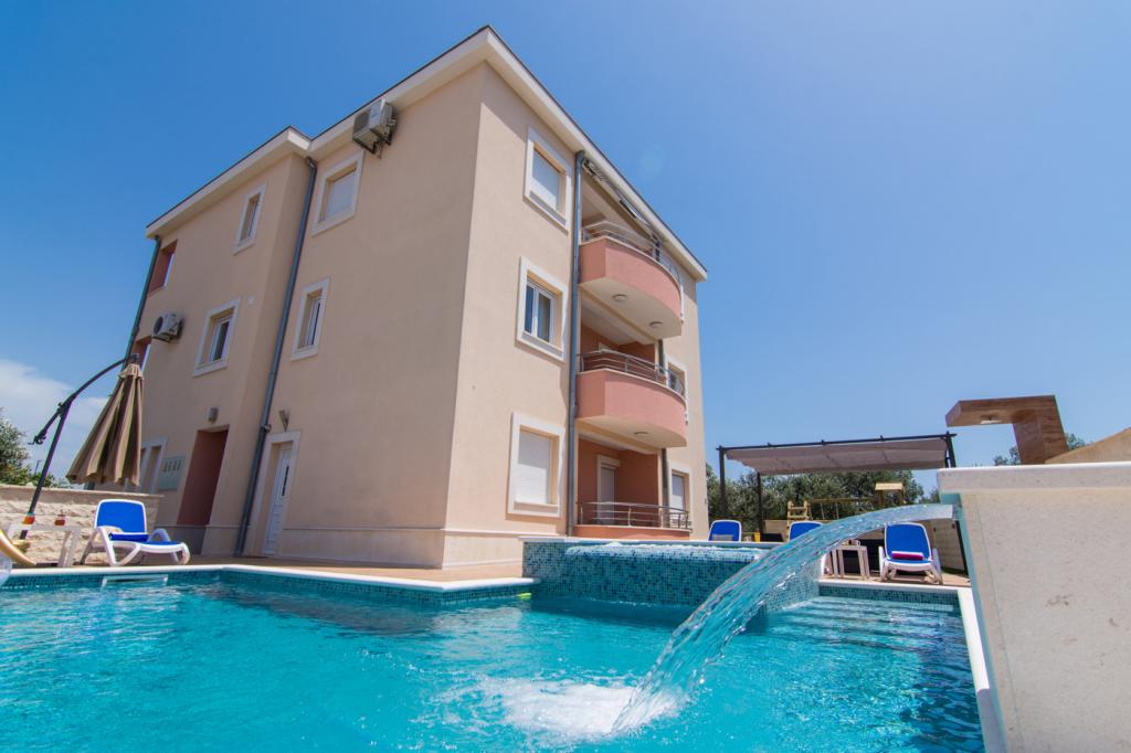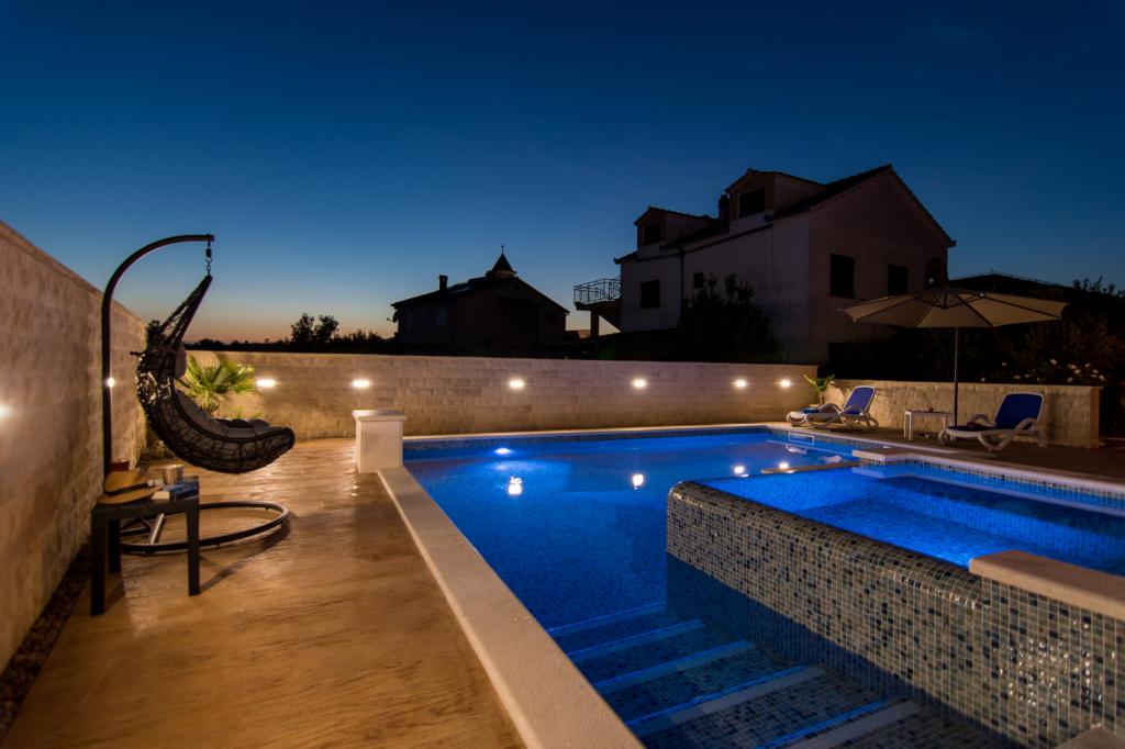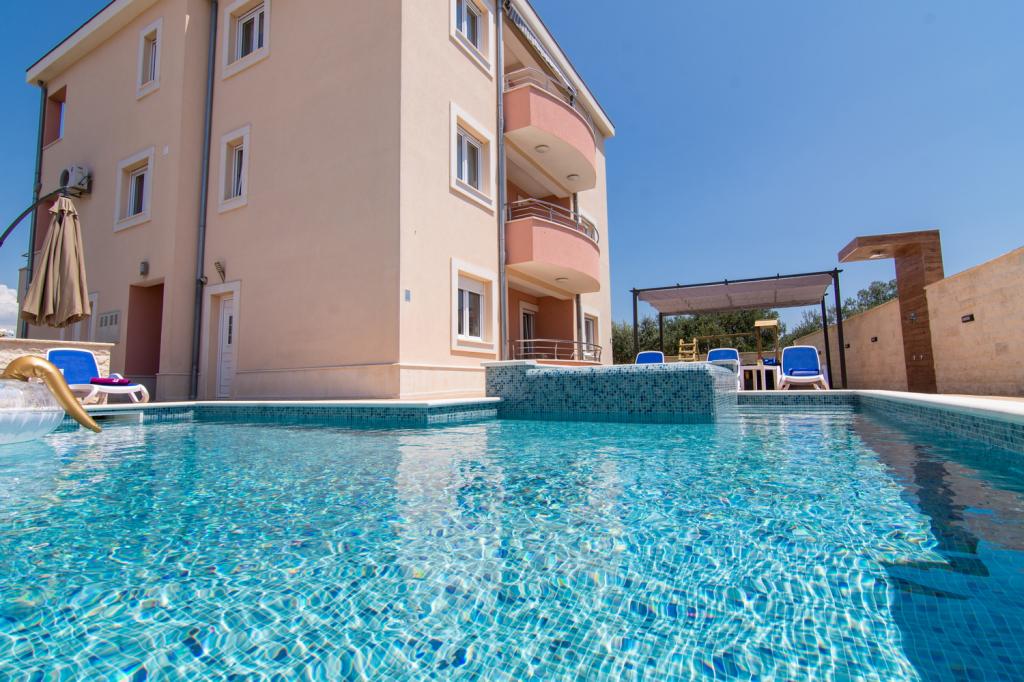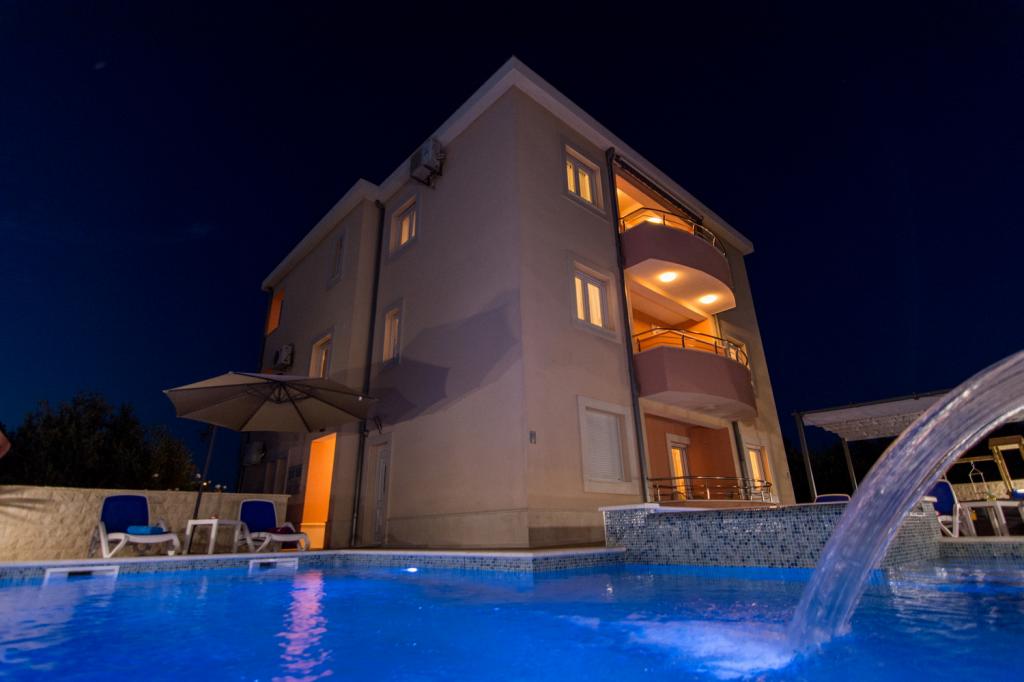 Moderně vybavené, klimatizované apartmány Villa Peky se nacházejí v rodinném domě na ostrově Čiovo v Okrug Gornji. Dva apartmány A2 2 a jeden apartmán 4 2 mohou pojmout až 14 osob. Před domem je parkoviště pro hosty. V zadní části domu je vyhřívaný bazén s jacuzzi, dětské hřiště a zastřešený venkovní gril s velkým stolem. Nejoblíbenější destinací v regionu Trogir je Okrug Gornji na ostrově Čiovo s krásnou pláží. Stará vesnice Okrug se nachází na vrcholu malého kopce, na jehož úpatí je rybářský přístav, asi 4 km od centra Trogiru nebo 8 km od letiště ve Splitu. Na pláži v Okrug Gornji si můžete pronajmout skútr, vodní skútr, můžete si užít parasailing a další aktivity na moři. Během léta si v Okrug můžete užít i stín kaváren nebo restaurací, které kromě jiných jídel nabízejí i dalmatské speciality. Potápěčská škola Trogir Diving Center v Mavarčici vás seznámí s krásami podmoří střední Dalmácie.