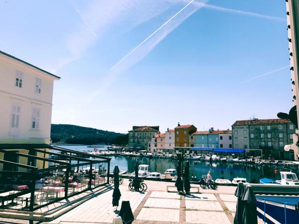 Byt i pokoj s koupelnou se nachází v centru města Cres a mají nádherný výhled na moře a promenádu.