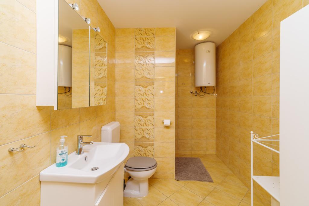 Byt je vybaven pro pohodlnou rodinnou dovolenou. Vzdálenost od pláže je 5 minut chůze od hotelu. Vzdálenost od centra města a všech dalších zařízení (pošta, na trhu, lékárna, banka, autobusové nádraží) je 10 minut. Byt se nachází v rodinném domě se zahradou. Obchod s potravinami se nachází 100 metrů od domu. Příjezd a odjezd je možný pouze o sobotách a nedělích.