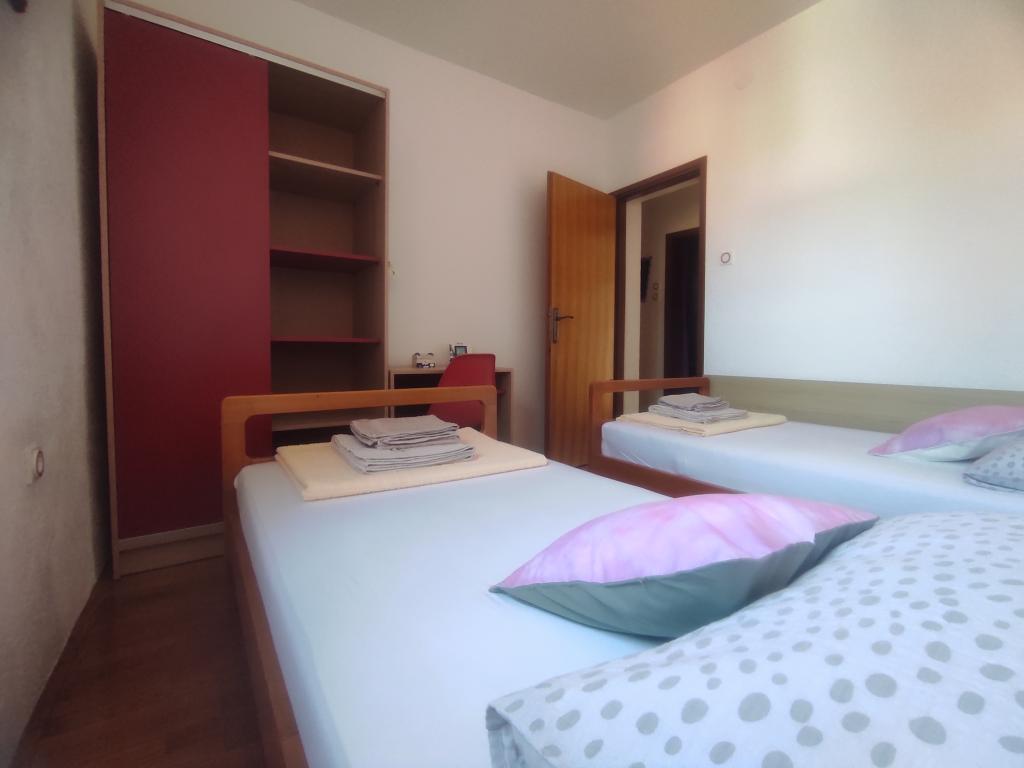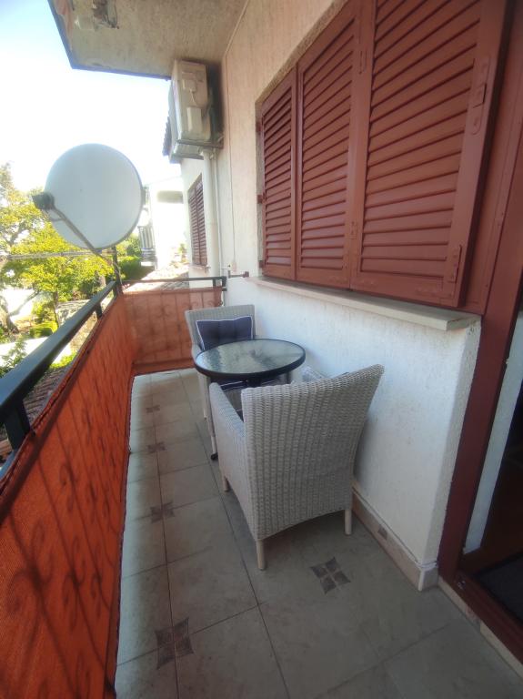 Byt se nachází v rodinném domě, v příjemném a klidném místě v blízkosti centra Crikvenice. Z balkonu je vidět pohled a je obklopená květinami a zelení. Vzdálenost od pláže je tři minuty chůze. Do centra města a všech dalších zařízení, je pět minut chůze. Nejbližší obchod mješovtom hrana je jen minut.