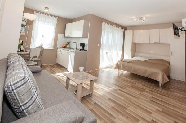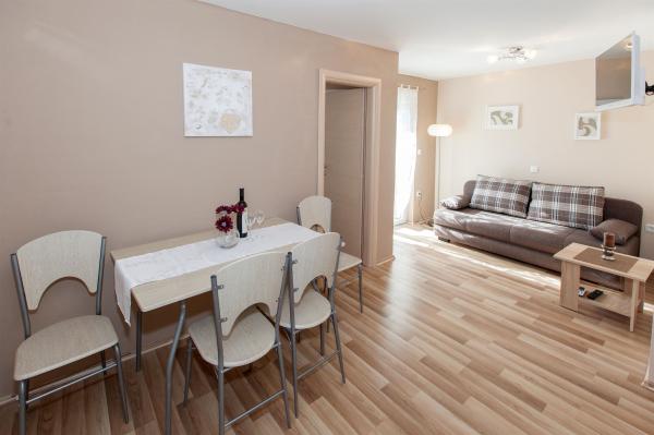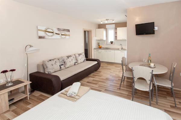 Pobytová taxa je v ceně.V apartmánu jsme strávili 4 noci. Dva dospělí a jedno dítě. Všechna chvála majitelům za jejich čistotu a vstřícnost. Apartmán má vše, co potřebujete. Pláž je velmi blízko. Nedaleko se nachází i obchod. Centrum města je vzdálené 10 minut příjemné chůze podél pobřeží. Můžete se také projít podél pobřeží (asi 2,5 km) do Selce, kde se nachází velmi krásná písečná pláž. Určitě se vrátíme.