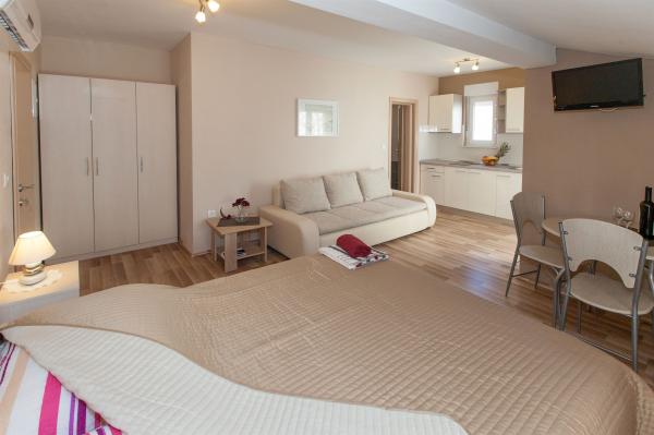Jedním slovem fenomenální! Z čistoty, pořádku a vybavení bytu (vybírám: kávovar, mikrovlnná trouba, myčka nádobí) přátelští hostitelé a zaměstnanci, v blízkosti pláže a centra je velkou výhodou bezplatné parkování před apartmánem. Jsme tu podruhé na stejném místě a věřím, že se ještě vrátíme !! Všechna chvála !!!