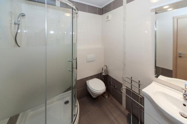 Byt je velmi pěkně zařízený a prostorný. V bytě je dostatek příslušenství a vše funguje bez problémů. Obzvláště se nám líbilo, že budova má jiný klasický systém teplé vody místo klasického ohřívače vody. Byt má velkou terasu s částečným výhledem na moře. Budova se nachází v klidné ulici, 2 minuty chůze od pláže. Byli jsme příjemně překvapeni, že budova voněla pěkně každý den a byla velmi čistá. Chvála majitelům, jsme rádi.
