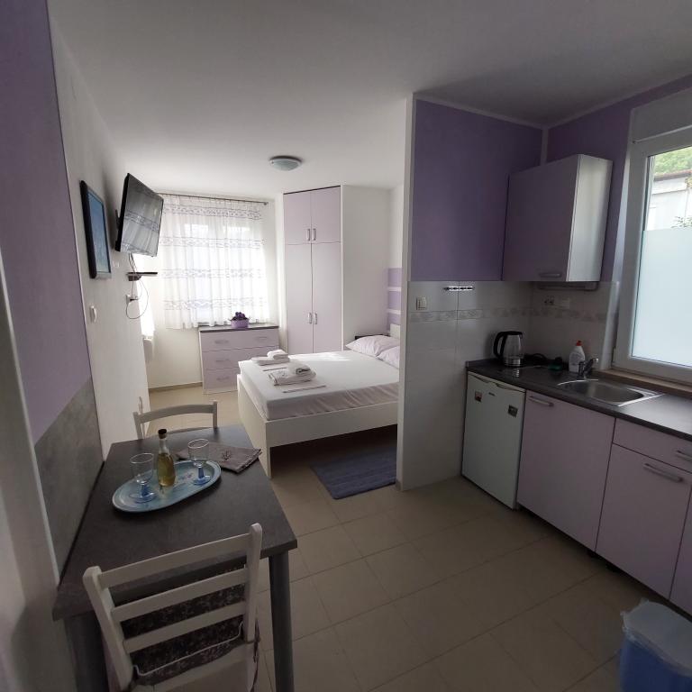 Velmi dobře zařízené apartmány, pouhých 50 metrů od moře. K dispozici je zabezpečené parkování ve dvoře. Objekt nabízí možnost přistýlky pro dětskou postýlku na vyžádání. Přistýlky pro dospělé nejsou k dispozici.