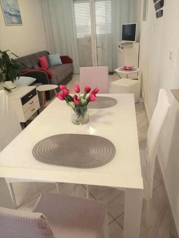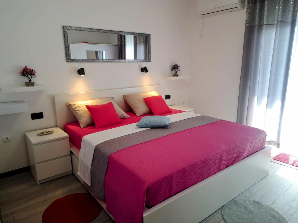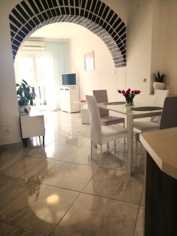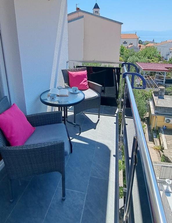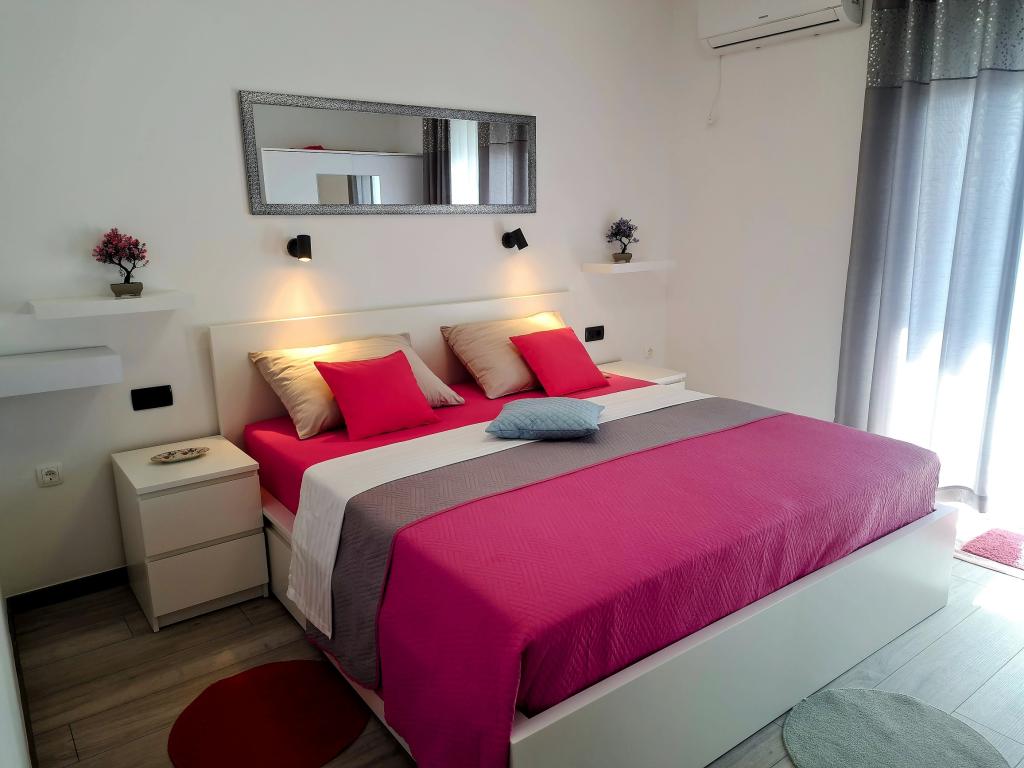 Moderní apartmány v centru města Crikvenica. Apartmány se nacházejí v klidné ulici s výhledem na moře, 5 minut chůze od pláže a centra. Všechny apartmány jsou vybaveny klimatizací (není součástí ceny apartmánu), TV, internet (wi-fi) a parkovací místo pro vaše vozidlo. Vážení hosté, těšíme se na váš příjezd!