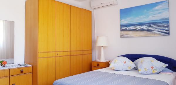 1. apartmán se nachází v podkroví a skládá se ze 2 ložnic s manželskou postelí, koupelny se sprchovým koutem, obývacího pokoje se 2 rozkládacími pohovkami, kuchyně a jídelny, menšího balkonu s výhledem na moře, většího střešní terasa a samostatný vchod. 2. apartmán se nachází v přízemí a skládá se ze 2 ložnic s manželskou postelí (1 přistýlka v každém pokoji), koupelny se sprchovým koutem, kuchyně, prostorné uzavřené terasy s jídelním stolem, menší zahradní terasy, velké terasy s výhledem na moře a samostatný vchod. Pokoj s manželskou postelí, vlastní koupelnou se sprchovým koutem, zahradní terasou s posezením a samostatným vchodem.