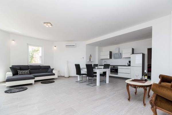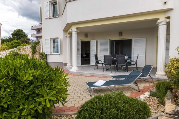 Moderní a luxusně vybavené apartmány s extrémně velkým balkonem / terasou v klidné části Crikvenice. Dům je obklopen velkou zahradou se středomořskými rostlinami. Nachází se 7 minut chůze od pláže a 10 minut chůze do centra města.