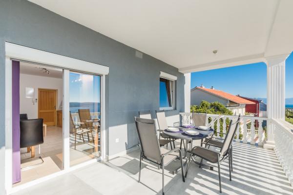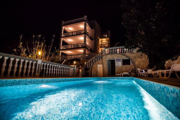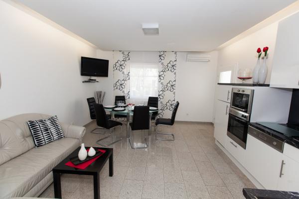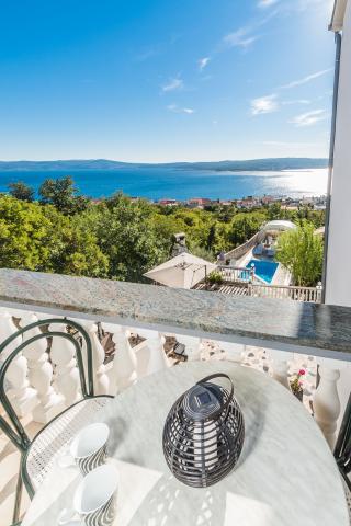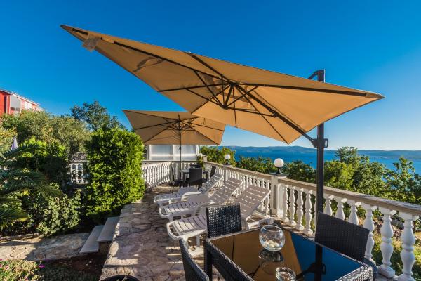 Moderní a luxusně zařízené apartmány v klidné části Crikvenice. Dům je obklopen středomořskými rostlinami a prostorný vyhřívaný bazén nabízí každému hostu úplné vyžití. Pro sportovní fanoušky je ve dvoře domu umístěna plně funkční tělocvična. V domě je také velká kuchyně, kde můžete oslavit narozeniny. Každý host může volně používat kávovar, který je zdarma.