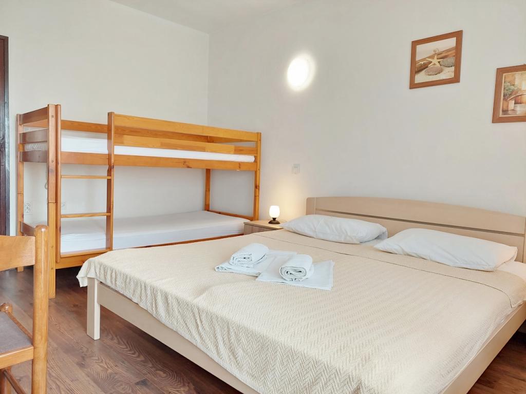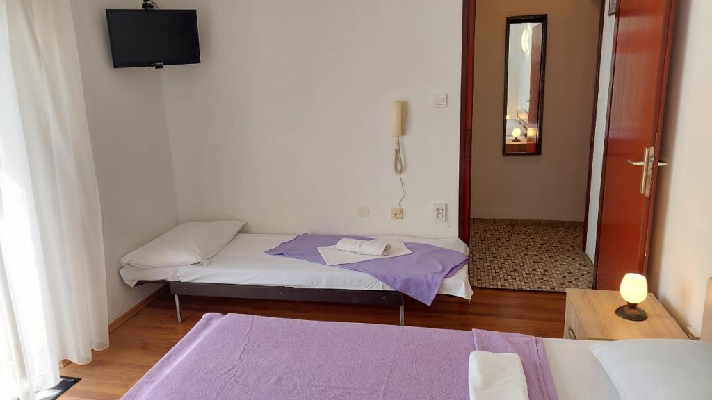 PANSION KLAUDIJA s rodinnou tradicí více než 40 let, nabízí ubytování ve 14 plně vybavených pokojích: sprcha, WC, balkon (12 pokojů s výhledem na moře), ústřední topení, telefon, SAT/TV a klimatizace. K dalšímu vybavení patří: - soukromé parkoviště, - společenská místnost se SAT/TV, - trezor, - restaurace s barem a zahradní terasou, - krásná zahrada s fontánou. - bezplatný internet (Free WIFI) Naši hosté, stejně jako všichni ostatní návštěvníci, mají k dispozici restauraci s 80 místy k sezení a otevřenou terasu. V příjemné atmosféře s přátelským personálem si mohou vychutnat mnoho specialit místní i mezinárodní kuchyně.