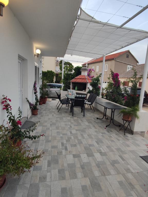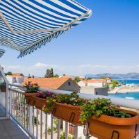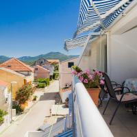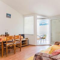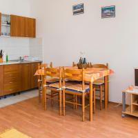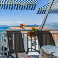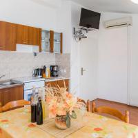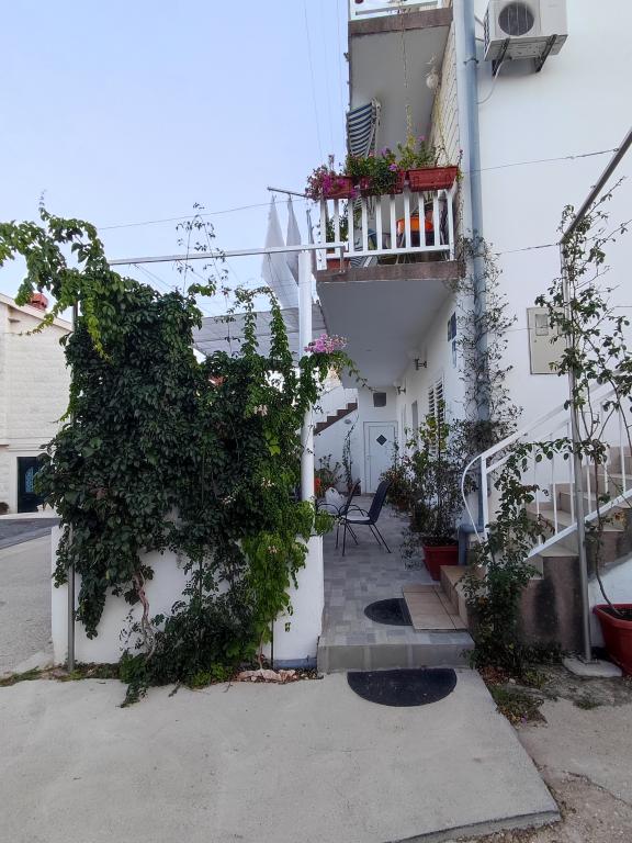 Byt se skládá z ložnice (ve které je manželská postel 160x200 a jednolůžko 90x200, skříň), obývací pokoj s kuchyní. Kuchyň je vybavena veškerým potřebným nádobím, nádobím, příbory, talíři, rychlovarnou konvicí, kávovarem, mikrovlnnou troubou, sporákem s troubou, lednicí s mrazákem. V obývacím pokoji je jídelní stůl se židlemi, rozkládací pohovka, klimatizace, TV. V koupelně je sprcha, WC, skříňka se zrcadlem, ve které je vysoušeč vlasů. Z obývacího pokoje je východ na balkon s krásným výhledem na moře. Na balkoně je stůl a židle. Dům je ve druhé řadě k moři, 3 minuty chůze od centra, 5 minut chůze od pláže.