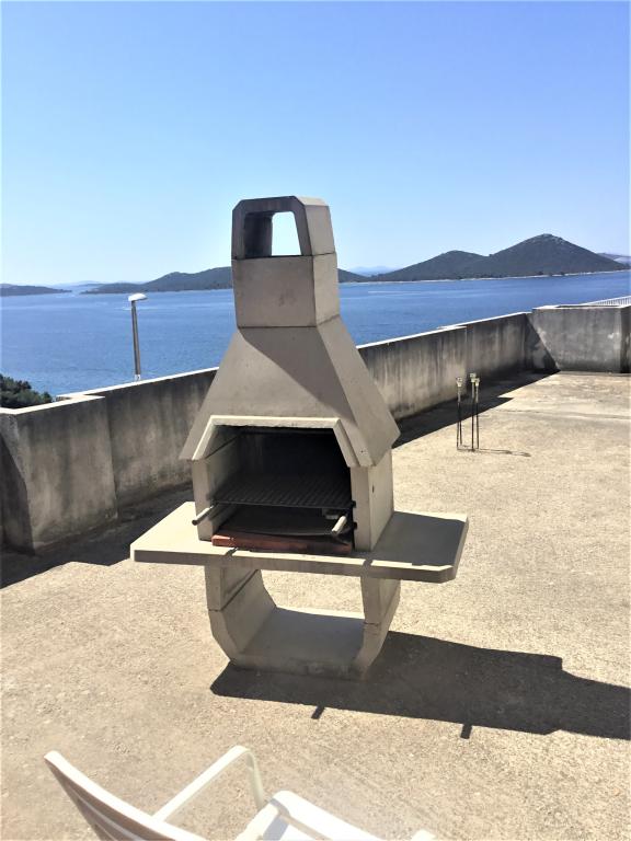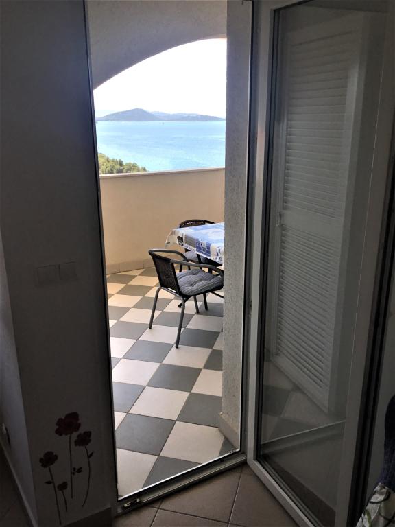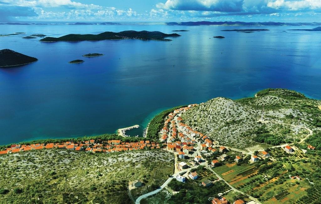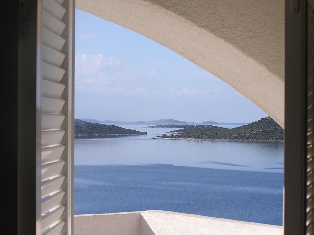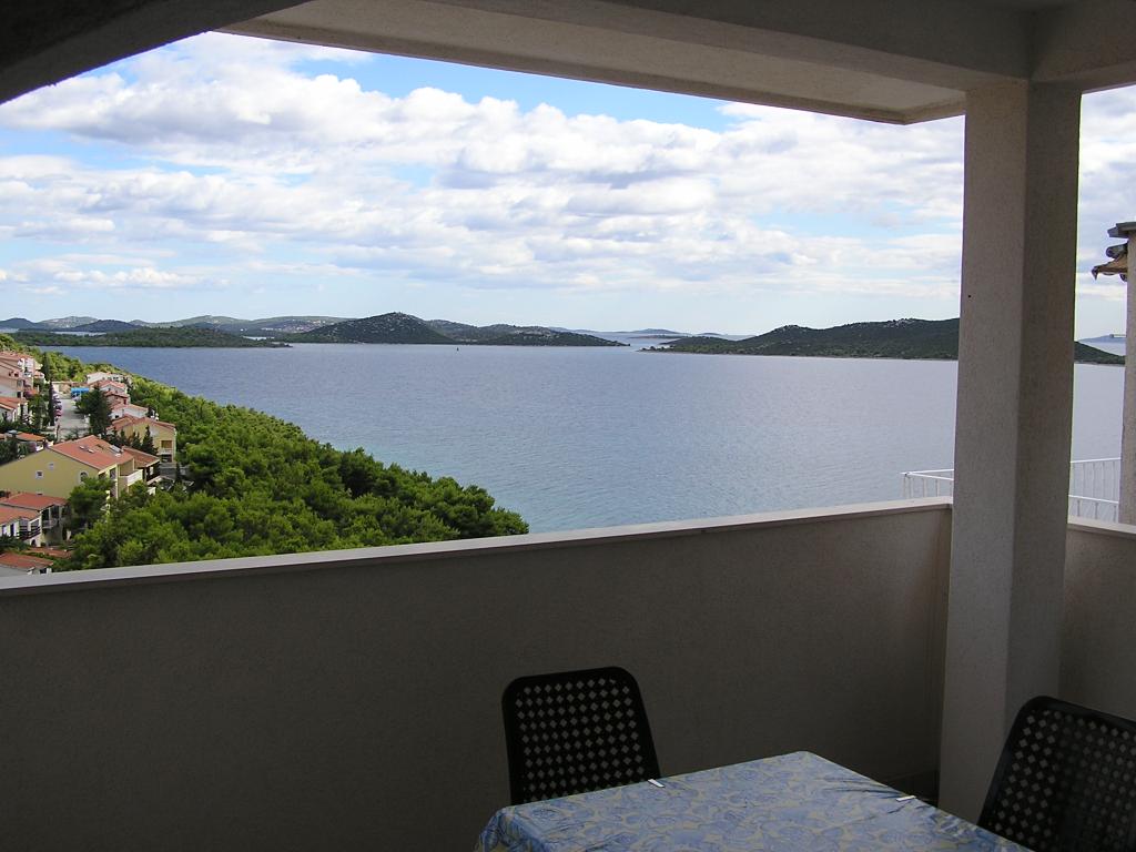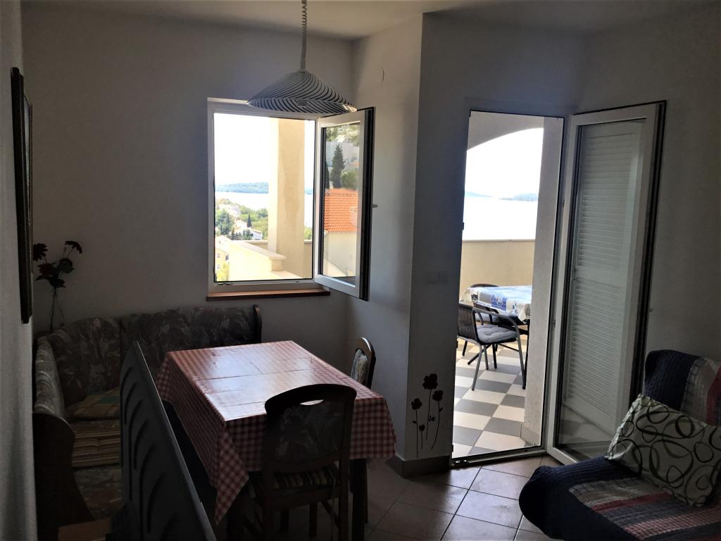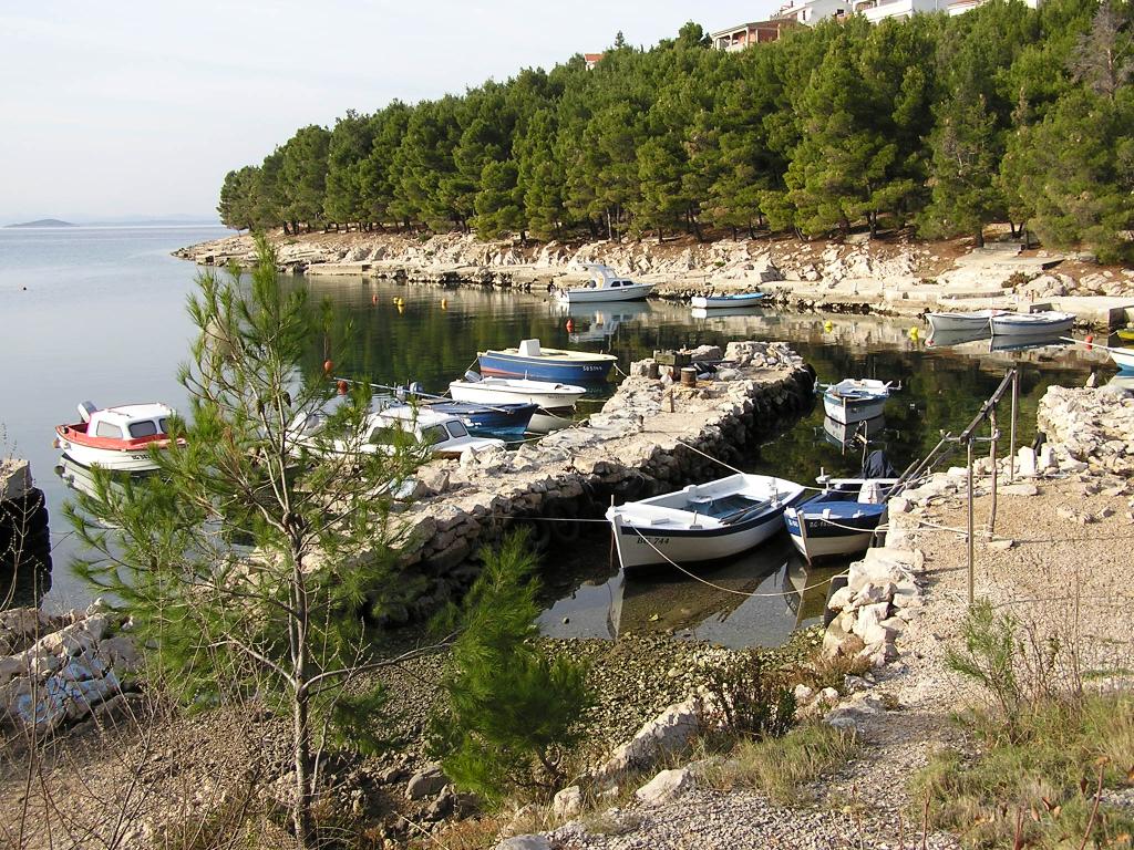 Nemovitost se nachází ve 3. řadě víkendové osady v zátoce Dolaška draga, která je součástí města Drage, přibližně 100 m (vzdušnou čarou) od moře a pláží, které se táhnou podél osady až k hustému borovému lesu a promenádě. Vzhledem k dominantní nadmořské výšce pozemku (přibližně 50 m nad mořem) mají všechny apartmánové pokoje a terasy krásný panoramatický výhled na samotnou víkendovou osadu, místní přístav, okolní pláže, blízké ostrovy a město Murter a Kornatské ostrovy v dálce. Vzdálenost od pozemku k moři (pláže obklopené hustými borovými lesy a promenádou) je přibližně 300 m po příjezdové cestě přes víkendovou osadu Dolaška draga; pěšky kolem silnice (přibližně 10 min) nebo autem (2 min). K moři se lze dostat pěšky rychleji (5 minut), pokud použijete krátký úsek příjezdové cesty a jedno z několika schodišť ve víkendové vesničce, které je účelově postaveno pro přístup k moři, pláži, promenádě, borovému lesu, přístavu, kavárně atd. Objekt má dva apartmány (ve 2. a 3. patře), z nichž je pronajímán pouze apartmán ve 2. patře, a hostitelé (2-4 osoby) se v létě ubytovávají v apartmánu ve 3. patře, takže jsou denně k dispozici a ve službách hostů, aniž by narušovali jejich klid a soukromí. Hosté mají k dispozici 1 parkovací místo pro auto v garáži objektu a na panoramatické terase (80 m2) nad garáží (1. patro) mohou neomezeně využívat příslušné vybavení (gril, zahradní stůl se 4 židlemi a 2 lehátky).