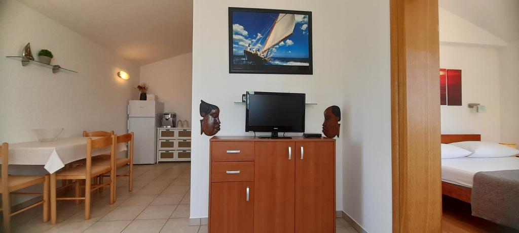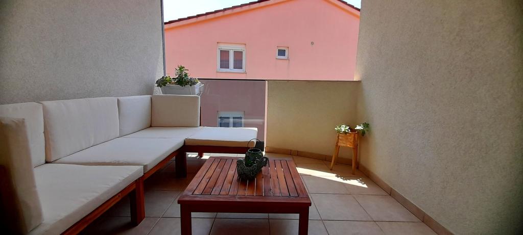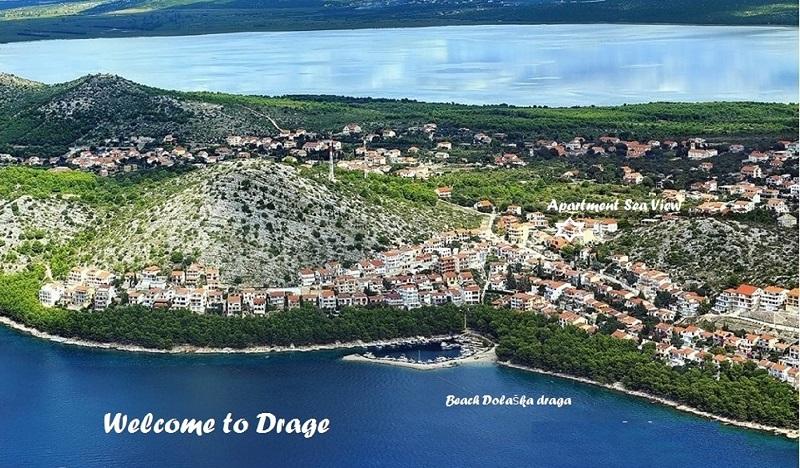 Apartmán Sea View se nachází v městečku Drage, v zátoce Dolaška draga, kde je velká oblázková pláž a nespočet malých dlážděných pláží. Hosté mají k dispozici také nádhernou promenádu "lungo mare", dětský park a několik útulných kaváren. Byt se nachází ve třetím patře malého obytného domu a nabízí nádherný a jedinečný výhled na moře. Je to 5 minut chůze od pláže. Byt má dvě ložnice, koupelnu, kuchyň s obývacím pokojem a třemi balkony a hosté mají k dispozici dvě klimatizace, WiFi plochý internet, hlídané parkovací místo, pračku, kávovar...