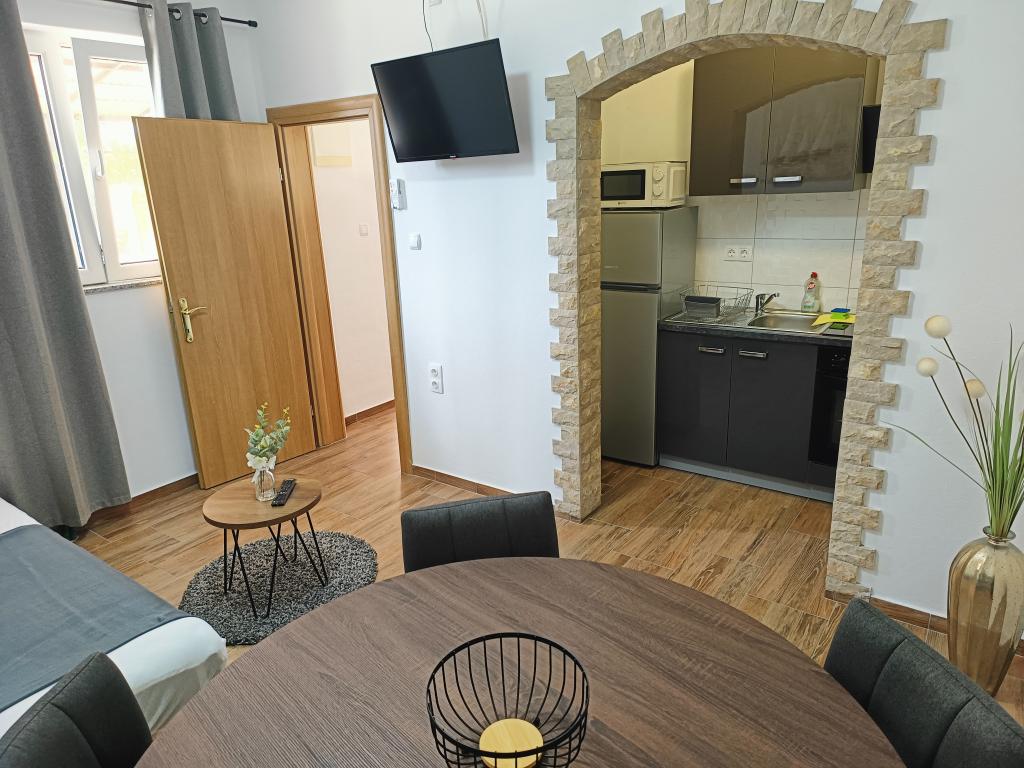 Mělo by to být 6/5. Neuvěřitelně pohostinný majitel. Zelenina a ovoce z vlastní zahrady a sadu. Skvělý byt, čistá, dobře vybavená kuchyň. Klidné a tiché okolí. Skvělé pláže, procházky k jezeru a Pakoštane.