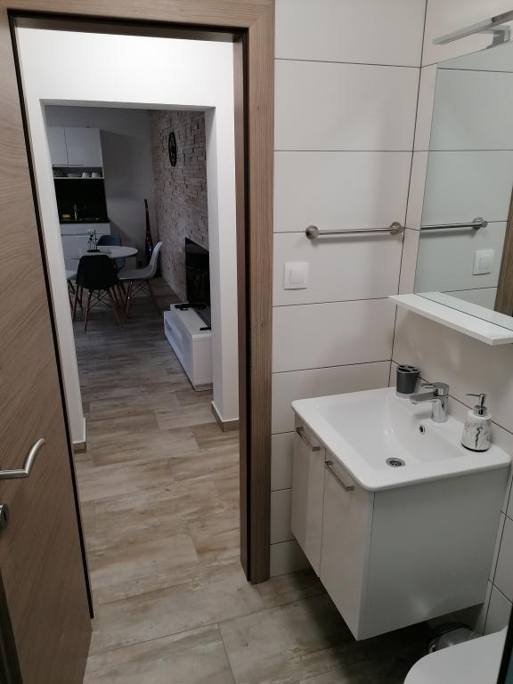 Apartmán je zcela nový, zařízený a čistý, moderně vybavený. Okolí je docela klidné, doporučujeme pro klidnou dovolenou s rodinou, k dispozici je také park pro malé děti. Apartmán se nachází v zadní části domu, kde slunce svítí pouze v časných ranních hodinách.