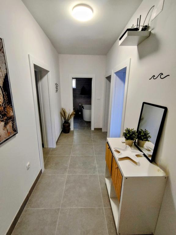 Apartmány Davor se nacházejí v malé vesnici Drage se nachází mezi Jaderským mořem a Vranské jezero přírodního parku. Je obklopen krásnou přírodou a četnými plážemi. Pláž je vzdálená pouhých 5 minut. Hosté, kteří budou ubytovaní v apartmánech v prvním a druhém patře budou mít krásný výhled na moře. Na zahradě je také gril, který je vždy k dispozici.