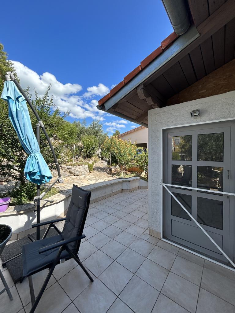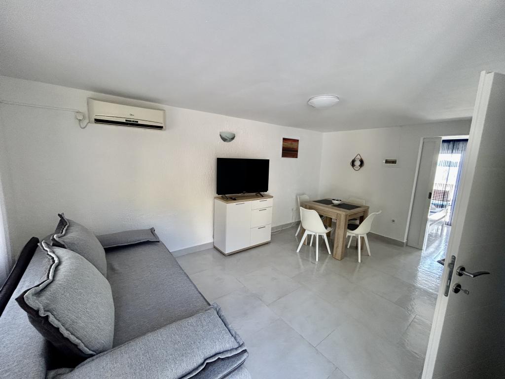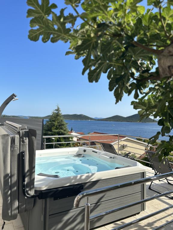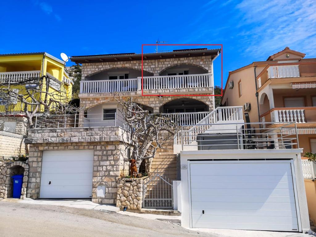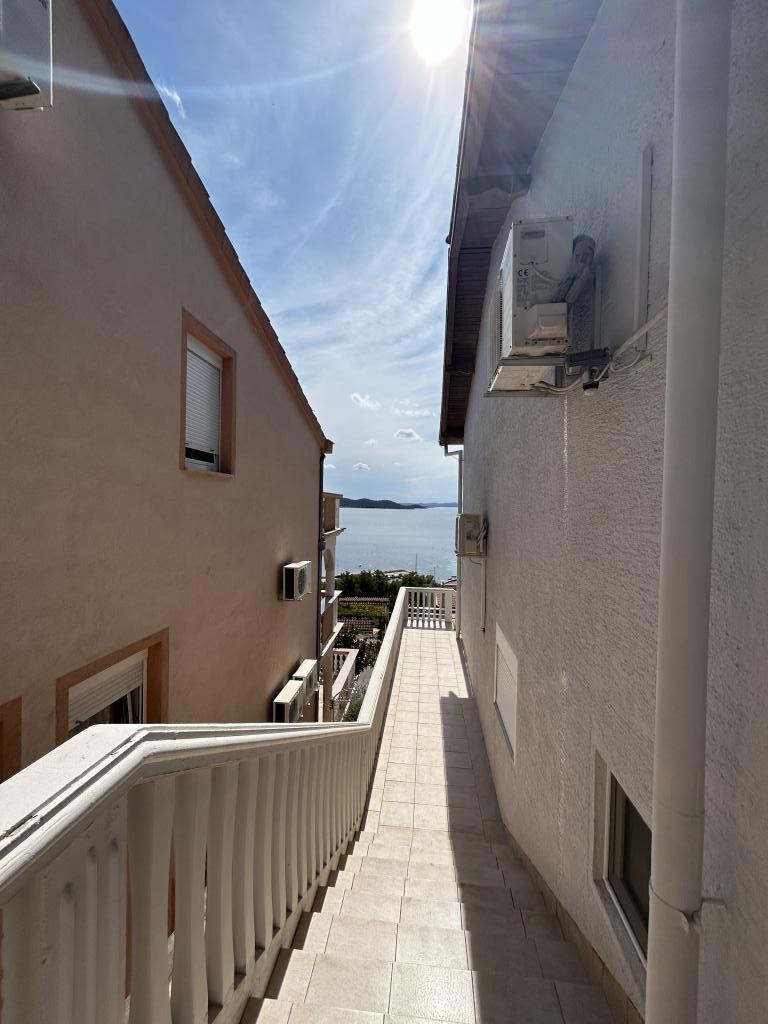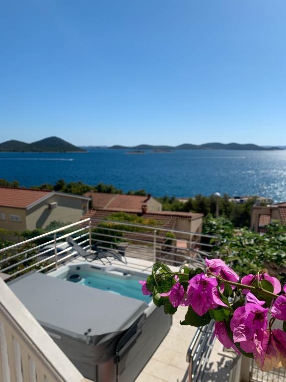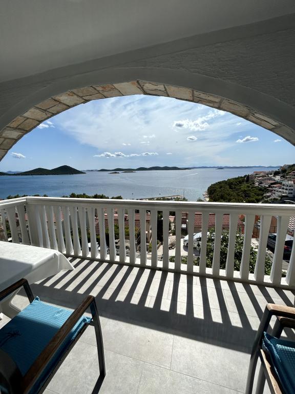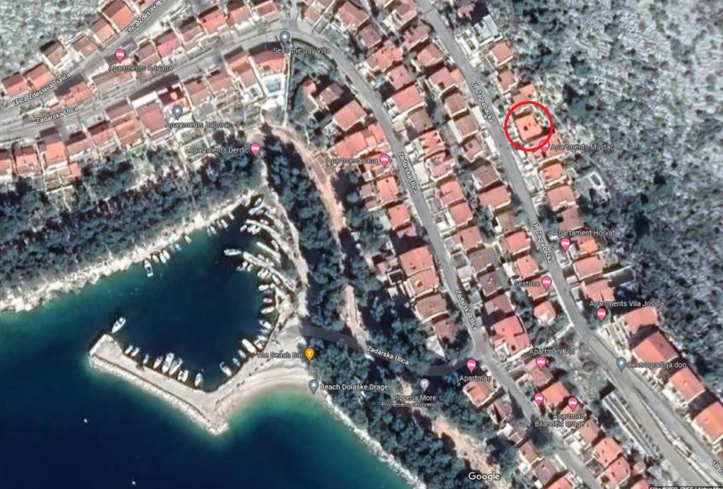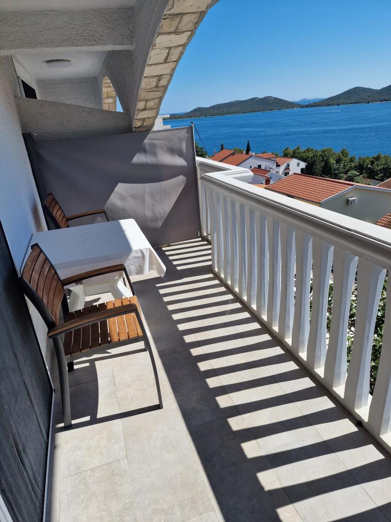 Apartmán s krásným výhledem na moře a ostrovy Kornati. Za apartmánem je terasa s upravenou zahradou a společným grilem. Je to 3 minuty chůze na pláž. Podél pobřeží je hustý borový les s kamennou a oblázkovou (pro děti) pláží. Vedle pláže je také plážový bar a restaurace-pizzerie a pekárna. Obchod je vzdálen pouhých 300 metrů, 5 minut chůze. Přírodní park Vranské jezero je vzdálený 1500 metrů.