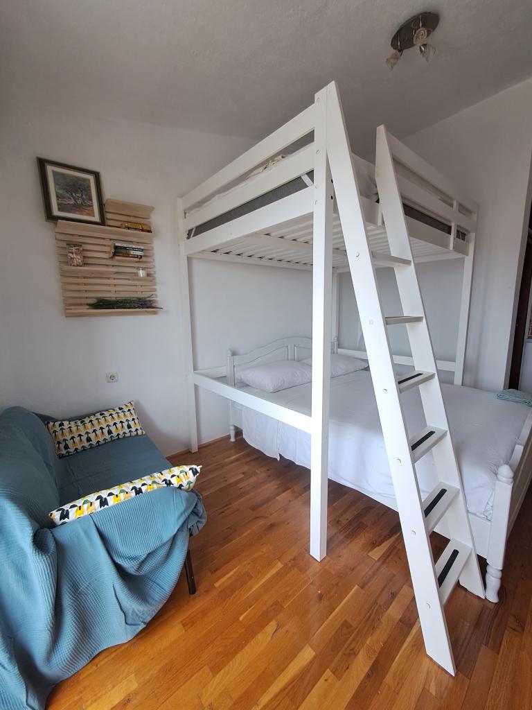 Dům s apartmány se nachází v klidné části Drago, staré vesnice, a je proto ideální pro rodinné ubytování. Nachází se přes ulici od kostela sv. Antonína Paduánského v Dragu. Apartmány jsou plně vybavené, klimatizované a mají balkony s výhledem na moře. Vzdálenost od moře 1300 m, vzdálenost od přírodního parku Vransko jezero 1500 m (dle Google maps). Dům s letní kuchyní a grilem k dispozici. Dostatek místa na zaparkování auta.
