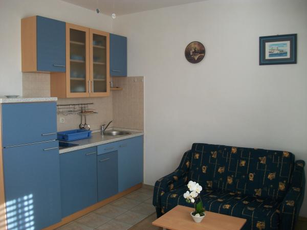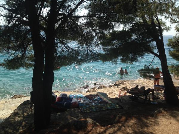 Apartmány se nachází v klidné okrajové části obce 60 m od pláže. Každý apartmán má terasu s krásným výhledem na moře a samostatným vchodem. Apartmány jsou plně vybaveny pro pohodlný pobyt a hladké. Podél pláže se táhne borový les, který poskytuje stín ideální pro horké letní dny. S skalnatá pláž je oblázková pláž, která je vhodná pro děti. Podél pláže je osvětlená promenáda 1, 5 km. V blízkosti jsou města Zadar a Šibenik s množstvím kulturních a historických památek, ale i pro hosty, kteří hledají noční život doporučujeme jít ve městě Calpe. Do 50 km tam jsou tři národní parky Kornati, Krka a Paklenica, a 2 km od přírodní park Vranské jezero (ornitologická rezervace), -, které je bohaté na ryby. Stručně řečeno, ideální místo pro klidnou a příjemnou dovolenou a uniknout od každodenního stresu.