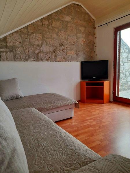 Autentický dalmatský kamenný dům "Porat", 100 m od pláže Porat! Dalmatský kamenný dům "Porat" má výhled na moře a nachází se pouhých 100 m od velké městské pláže Porat. Dům se skládá ze dvou ložnic, obývacího pokoje s přistýlkou, kuchyně, jídelny a koupelny rozložené na třech podlažích. Dům má balkon s výhledem na moře a venkovní terasu. Schodiště uvnitř domu není vhodné pro malé děti a osoby se zdravotním postižením. Hosté mají k dispozici klimatizaci, pračku, lednici s mrazákem, mikrovlnnou troubu... Hosté domu mají naprosté soukromí a hostitel je jim vždy k dispozici pro všechny jejich potřeby a přání. 100 m od domu je velká městská pláž Porat s četnými zařízeními a restauracemi. Stará dalmatská atmosféra domu a blízkost krásné pláže Porat poskytne našim hostům zvláštní atmosféru letní dovolené.