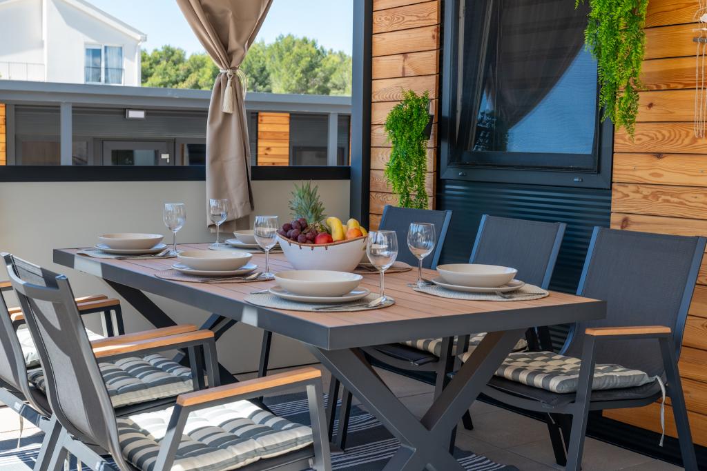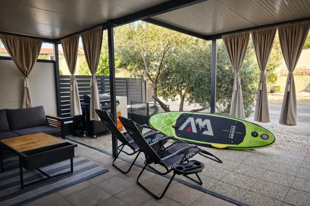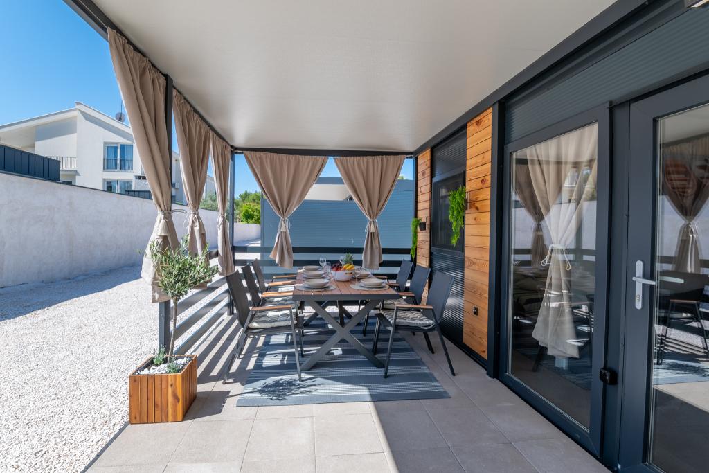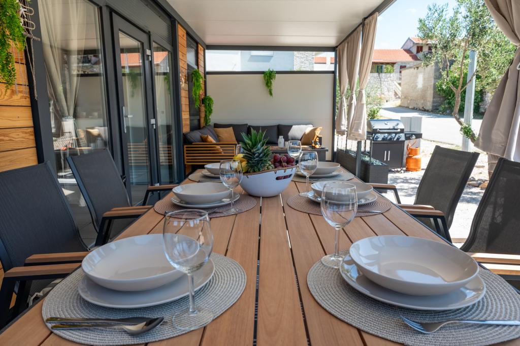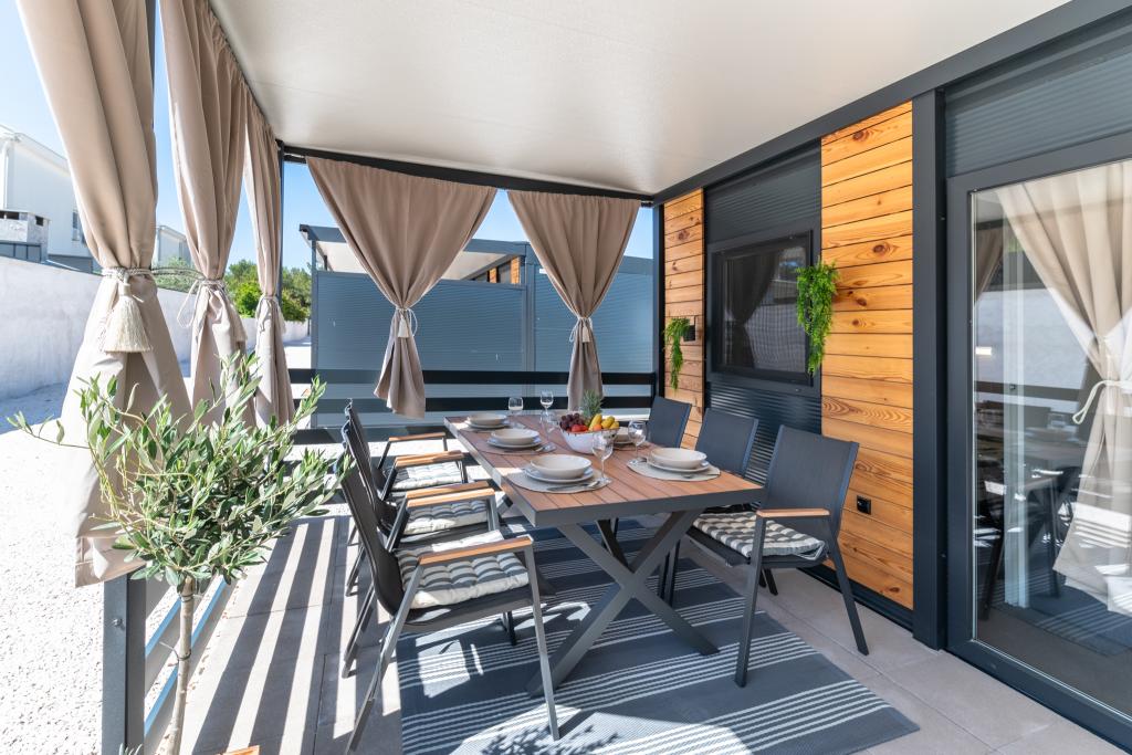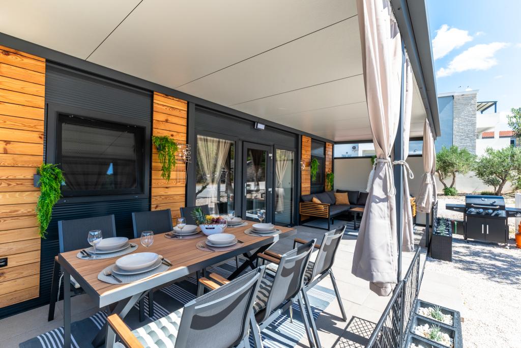 Objevte dokonalou dovolenou u moře v našich okouzlujících mobilních domech, které se nacházejí pouhých 70 metrů od pláže Porat v klidné vesničce Drage! V nabídce máme dva domy, z nichž každý může ubytovat až 4 dospělé a 1 dítě. Domy mají dvě ložnice. Jedna má manželskou postel o rozměrech 160x200, zatímco druhý pokoj nabízí manželskou postel o rozměrech 140x200. Rozkládací pohovka navíc pojme dítě do 5 let. Každý pokoj je vybaven pohodlnými postelemi a ložním prádlem, abyste si mohli dopřát odpočinek, který si zasloužíte. Obývací pokoj je vybaven moderním nábytkem a televizí, ideální pro večerní relaxaci. Kuchyň je plně vybavena všemi potřebnými spotřebiči, včetně lednice, sporáku, kávovaru, varné konvice a mikrovlnné trouby. Vychutnejte si ranní kávu nebo večerní drink na prostorné terase o rozloze 24 m²! Veškeré dotazy prosím zasílejte výhradně prostřednictvím kontaktního formuláře!