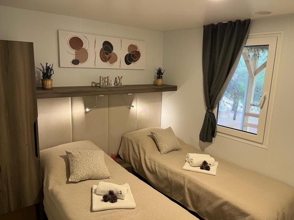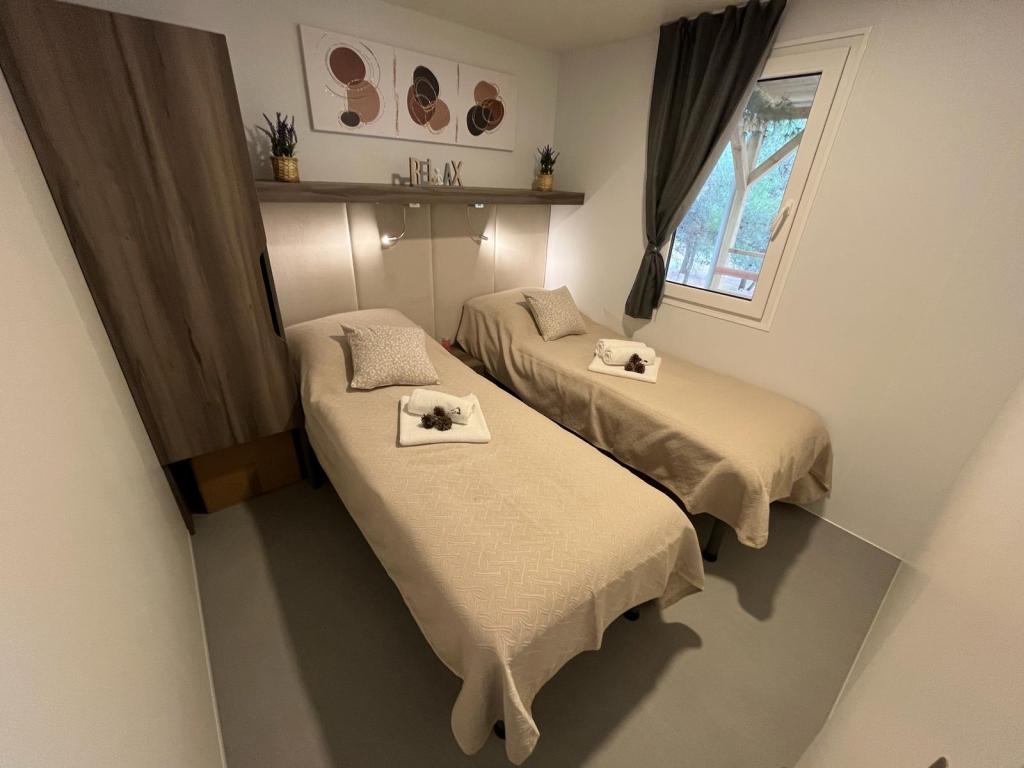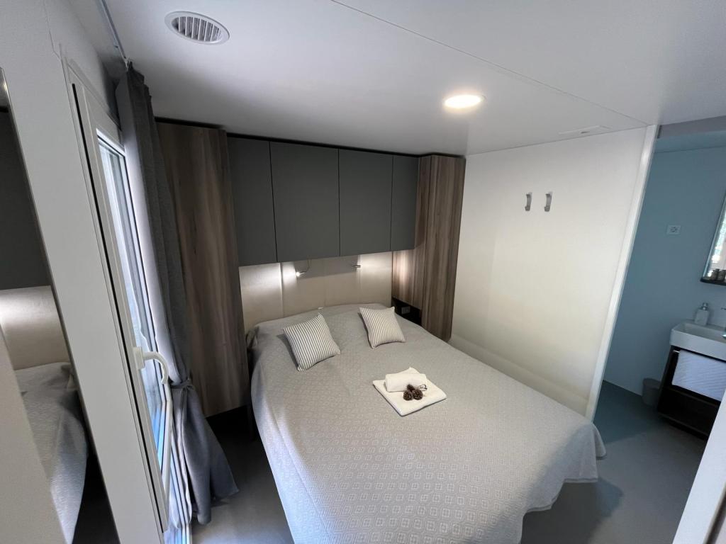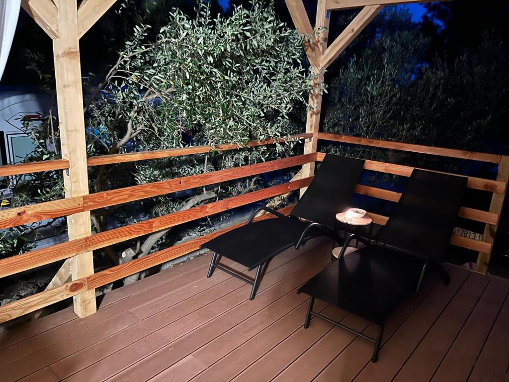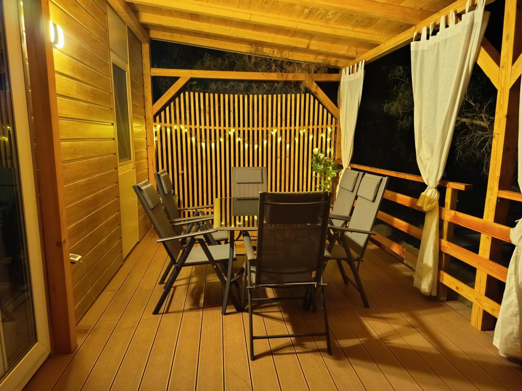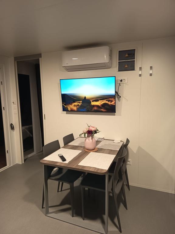 Mobilní dům o velikosti 35m2 s terasou o velikosti 24m2, nový, plně vybavený, se nachází v kempu Oaza Mira. Kemp je kategorizován jako 4****. V areálu kempu se nachází sociální zařízení s možností využití pračky, tenisové kurty, dětské hřiště, restaurace, kavárny, bazén. V blízkosti kempu se nachází také několik pláží s modrou vlajkou, přístav, promenády. Vzdálenost od kempu: - Pakoštane 4 km - Biograd na Moru - Vranské jezero 3 km - Zadar 39 km - Národní park Krka 36 km - Šibenik 24 km - Vodice 20 km Dům nabízí: - pokoj s manželskou postelí 160x200 cm - pokoj se dvěma samostatnými lůžky 90x200 cm - obývací pokoj s rozkládací pohovkou pro 2 osoby - 2 koupelny se sprchou a WC - kuchyň vybavenou pro 6 osob - lednici s mrazákem - rychlovarnou konvici - sklokeramickou varnou desku se 4 plynovými hořáky - myčku nádobí - Wi-Fi, Smart TV + Netflix - jídelní stůl + 4 židle - 2 lehátka, stůl a 6 židlí - 2 parkovací místa před mobilním domem, - ložní prádlo a ručníky